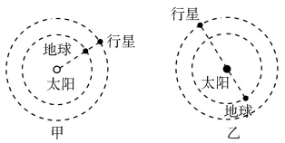 1.问题简述天体运动中的“相遇”是指两天体运行过程中相距最近,如图甲所示;而图乙时刻,地球和行星相距最远。