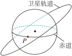 练习 [攻坚](2023·重庆·高考真题)(多选)某卫星绕地心的运动视为匀速圆周运动,其周期为地球自转周期,运行的轨道与地球赤道不共面(如图)。时刻,卫星恰好经过地球赤道上点正上方。地球的质量为,半径为,引力常量为。则(  )