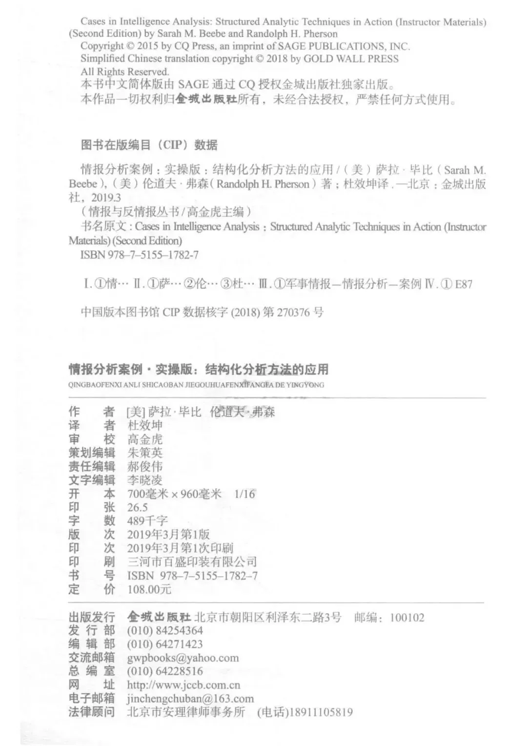 这种设计使其成为众多知名高校相关专业的指定教材,同时也是情报、国安、反恐、执法、国际关系乃至商业分析等领域不可多得的顶级培训读物。