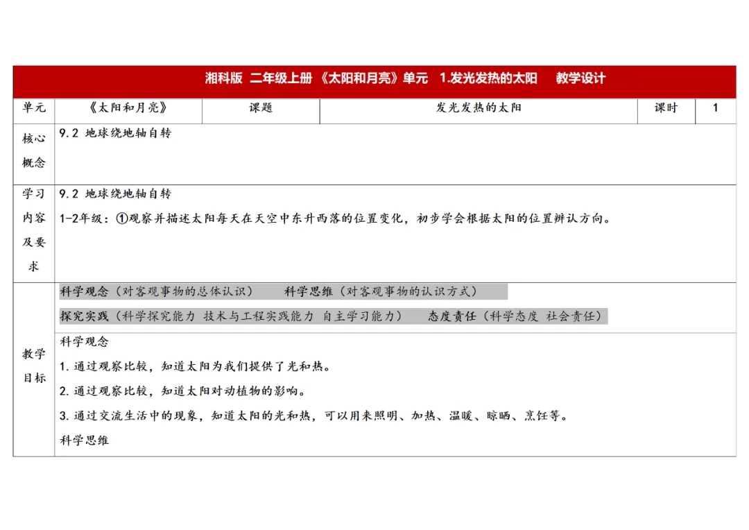 湘教版《科学》六年级上册核心素养教案+ppt课件,可下载!