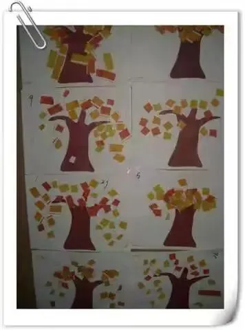 1. 小手巧变秋天:安全使用剪刀完成树叶拼贴画,发展手眼协调能力(提供预剪材料支持不同水平幼儿)