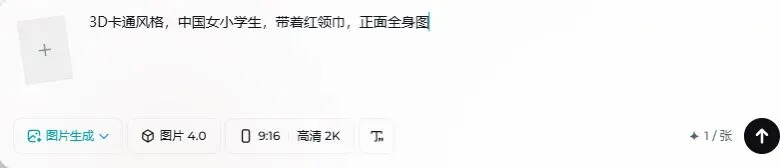 选择图片生成,图片版本为4.0,图片比例我选了9:16,然后输入你想要的图片风格,如下: