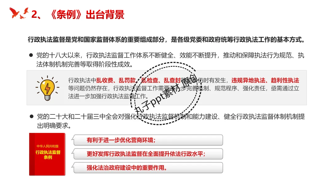 《行政执法监督条例》旨在加强和规范行政执法监督工作,促进严格规范公正文明执法,提升依法行政水平,强化法治政府建设。自2026年2月1日起施行。