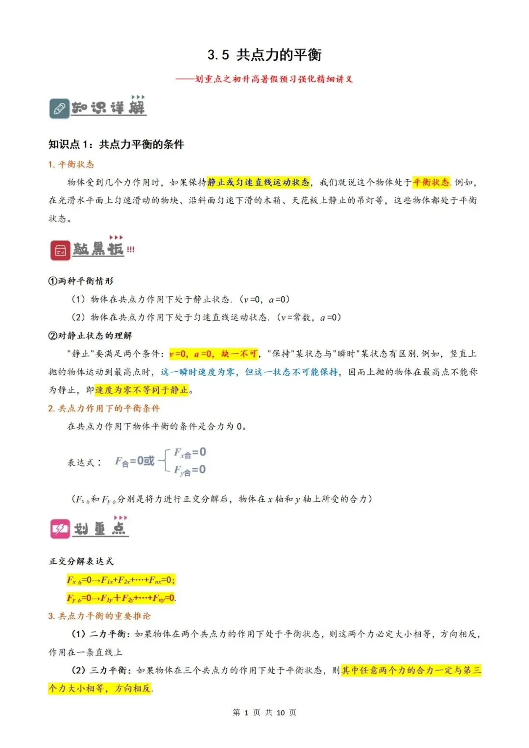 说明:本套资料2025年初升高物理【彩色版本】(通用版)。