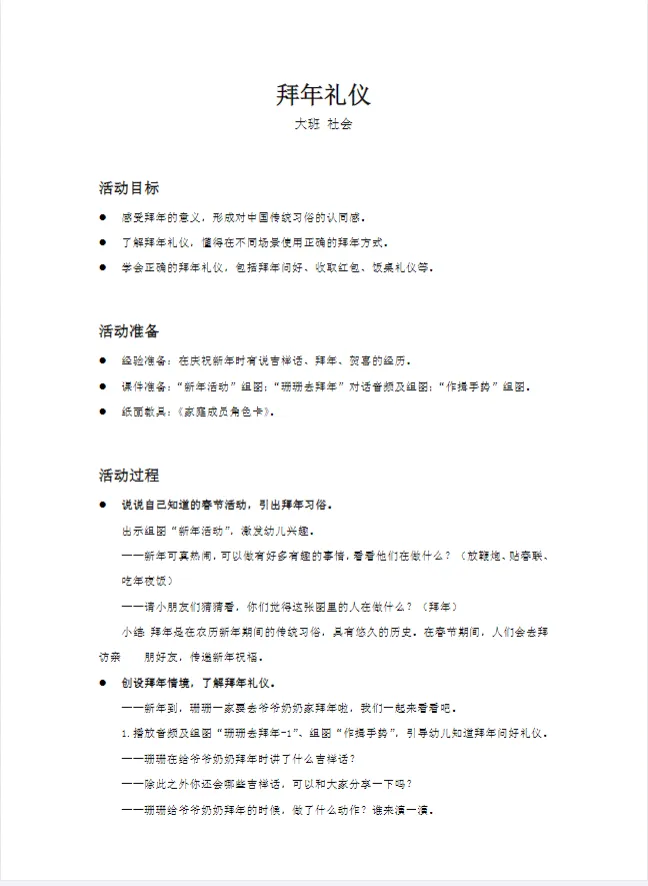 >幼儿园大班社会——《拜年礼仪》PPT+教案+分享