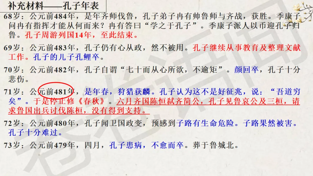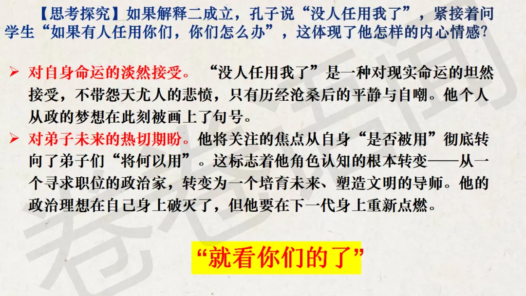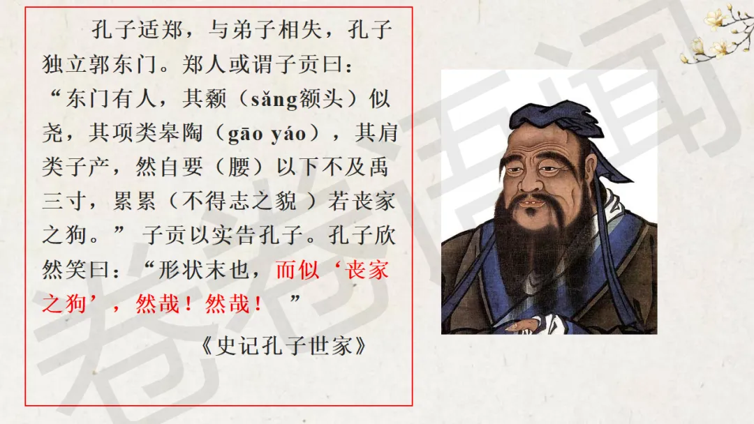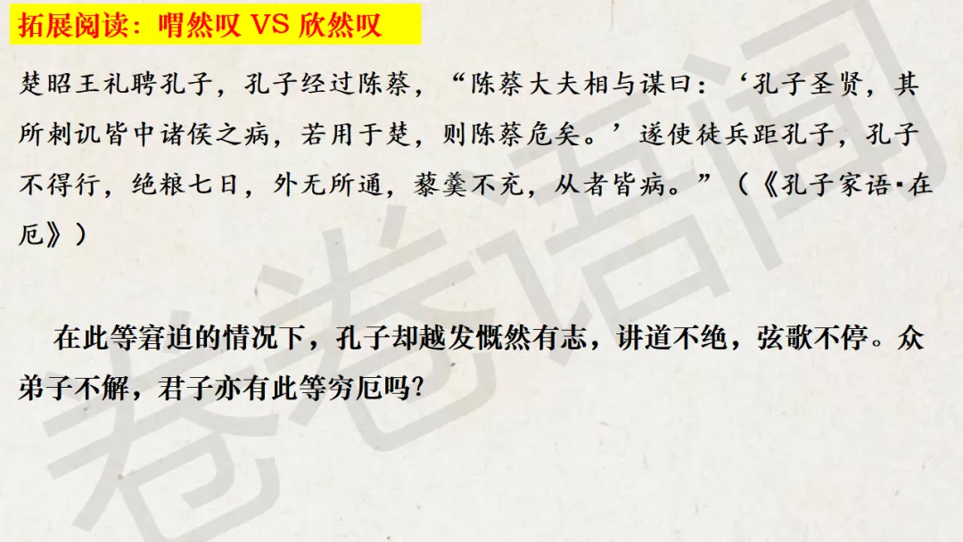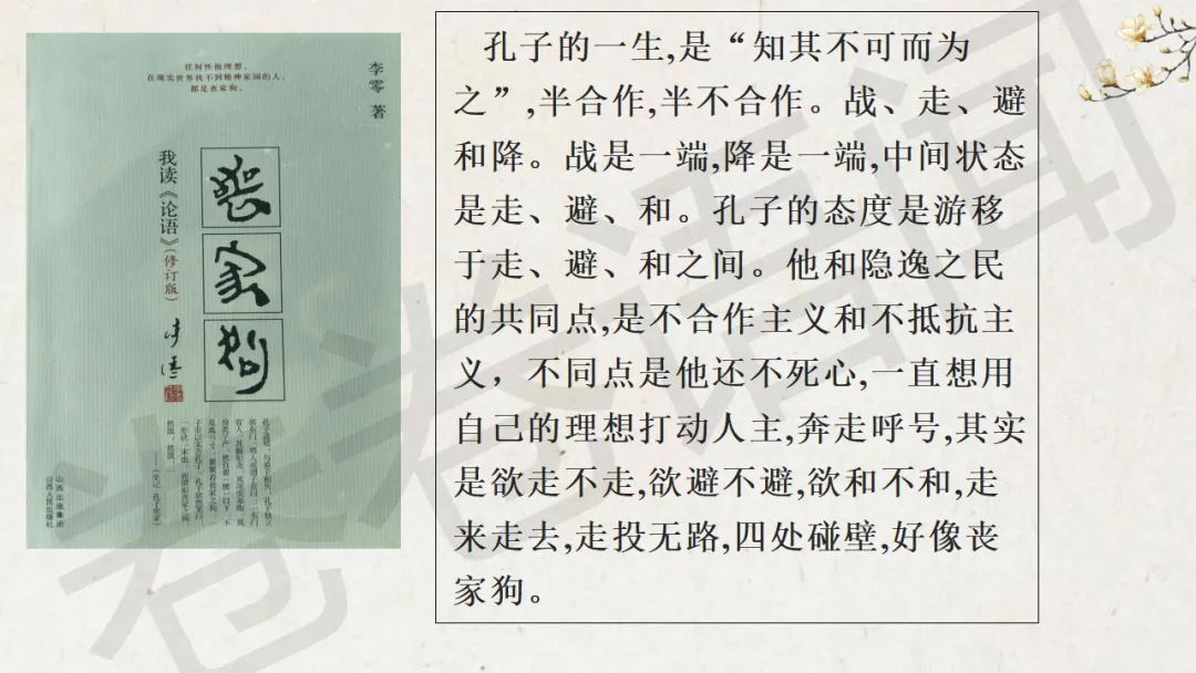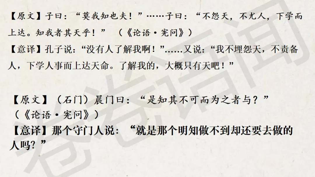 这节课中间穿插了很多的阅读材料,想让学生感受一下孔子的孤独与他知其不可而为之的伟大。