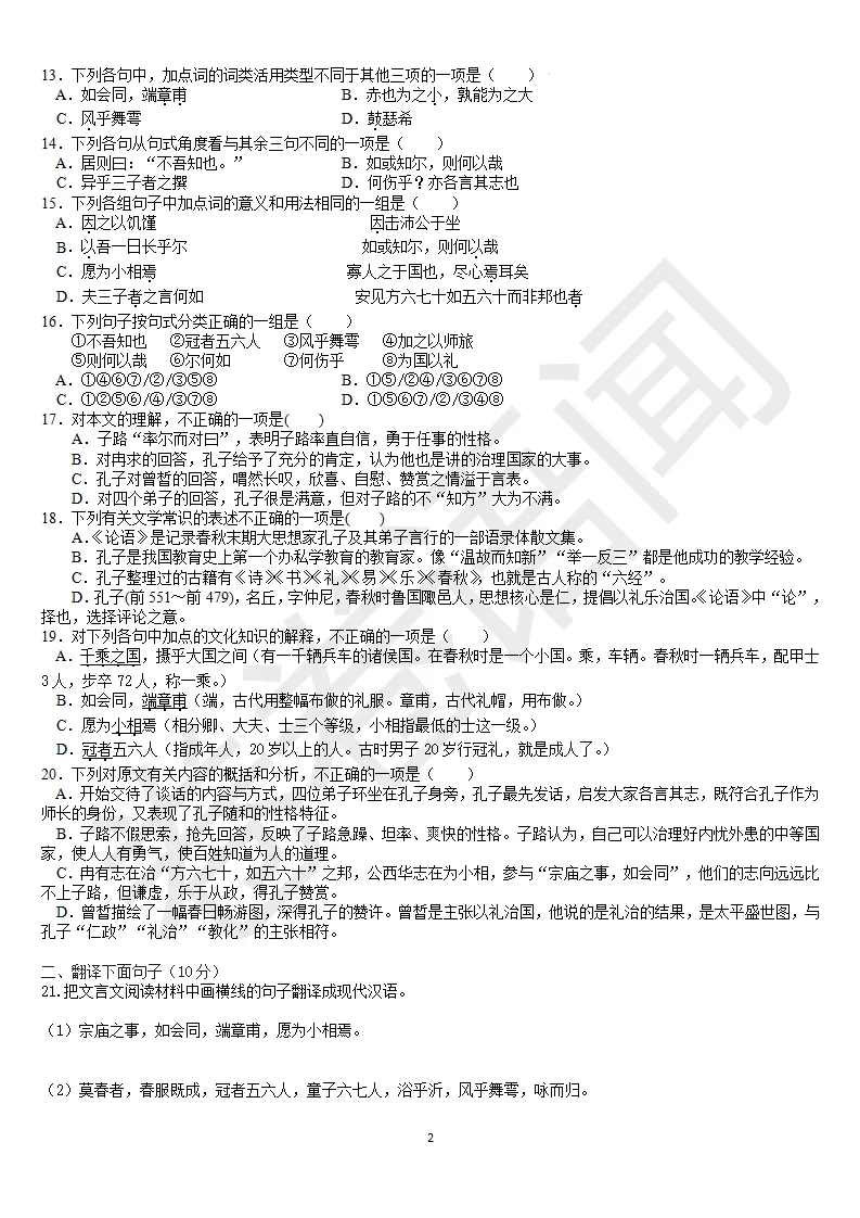 原来浙江卷的时候有专门的《论语》一本书,那个时候得花好几个星期讲《论语》。