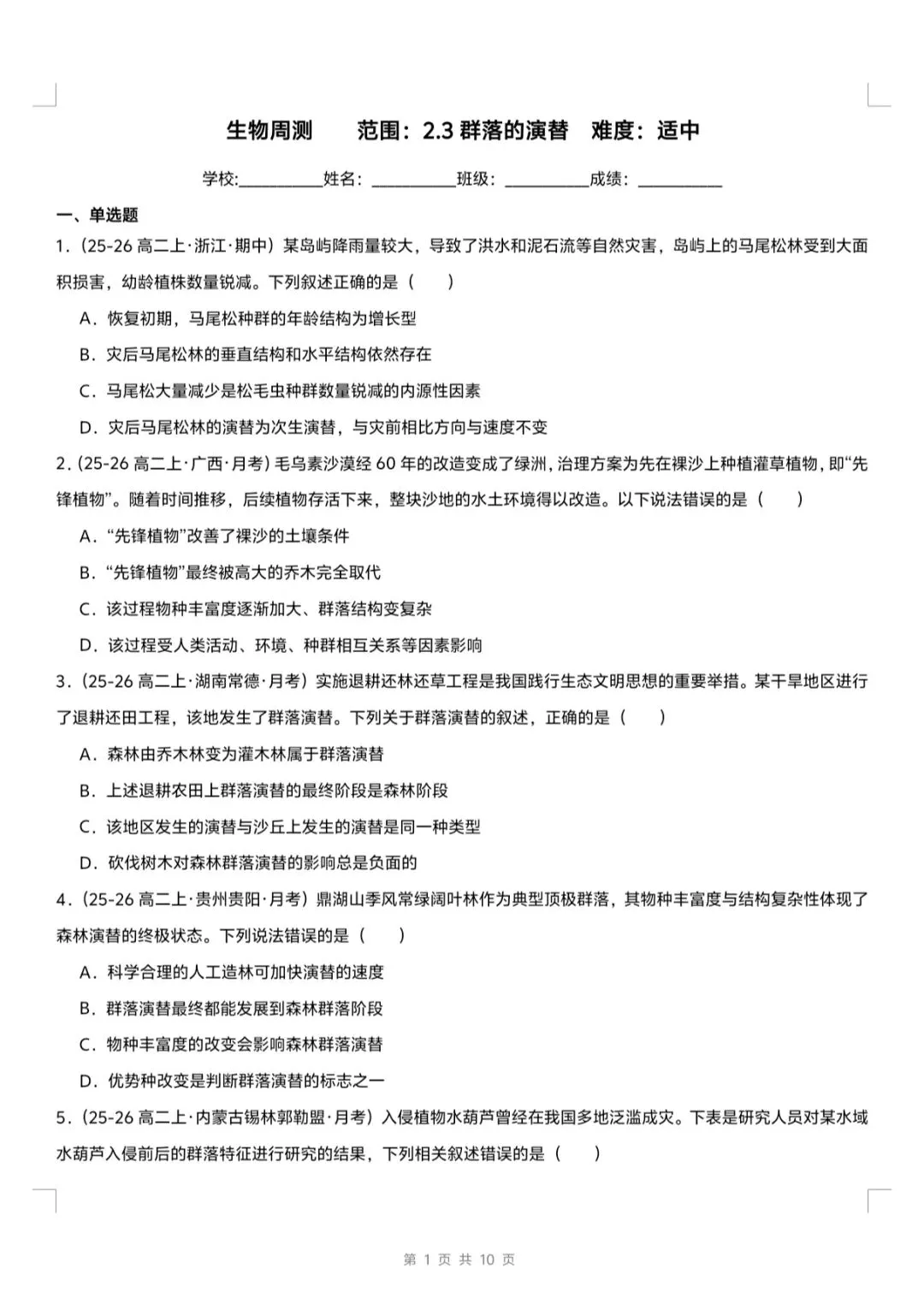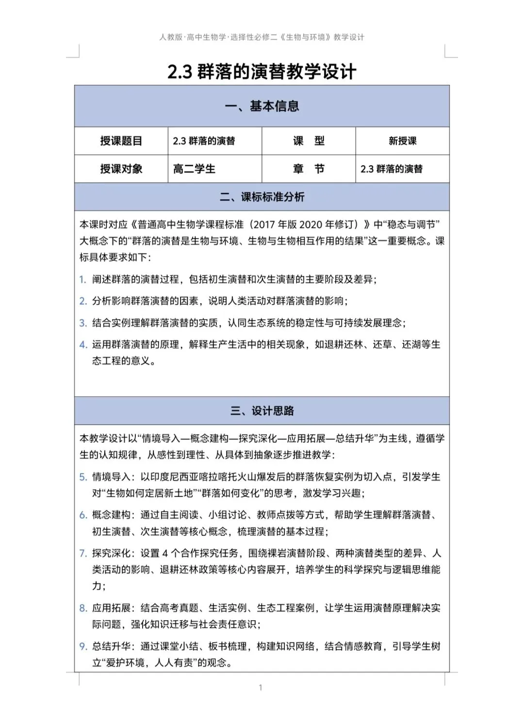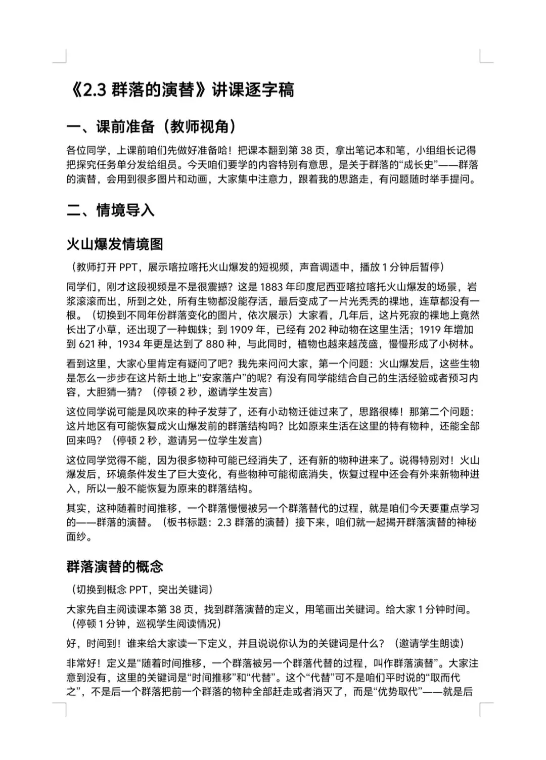 >2.3群落的演替课件+逐字稿+教学设计+导学案+知识清单+生物周测