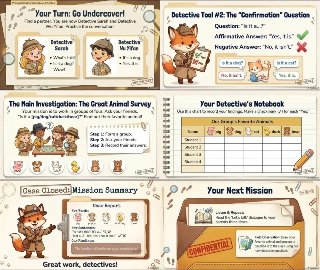 比如,“推进剧情”。在科学课上,用AI将一节课设计成“侦探破案”的连续剧,每页课件都是一个新线索或新挑战。