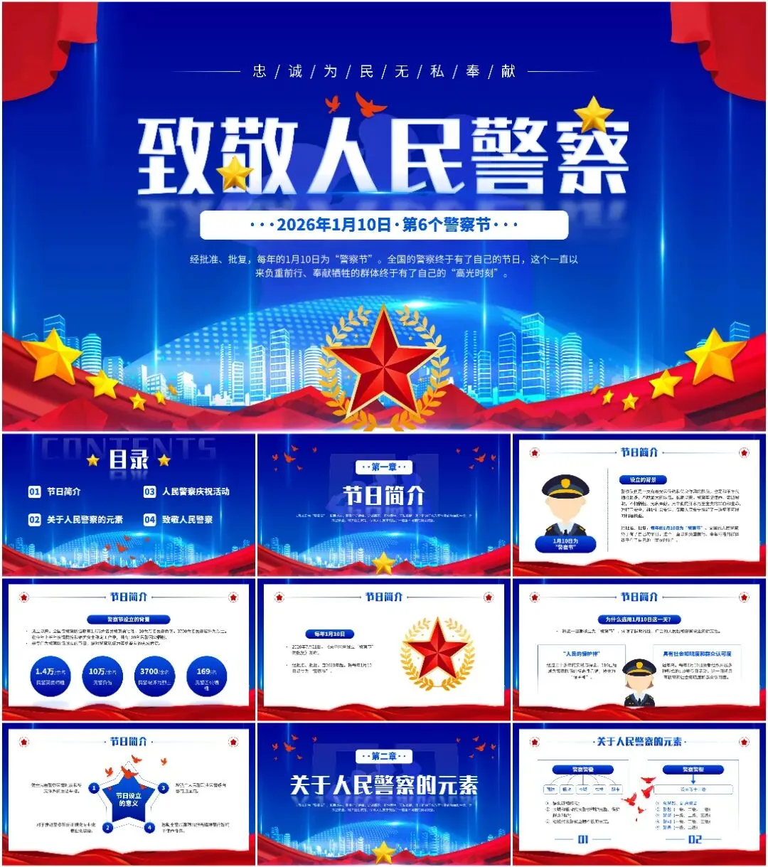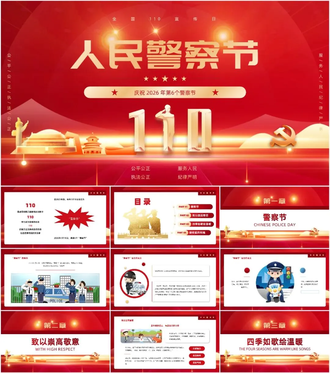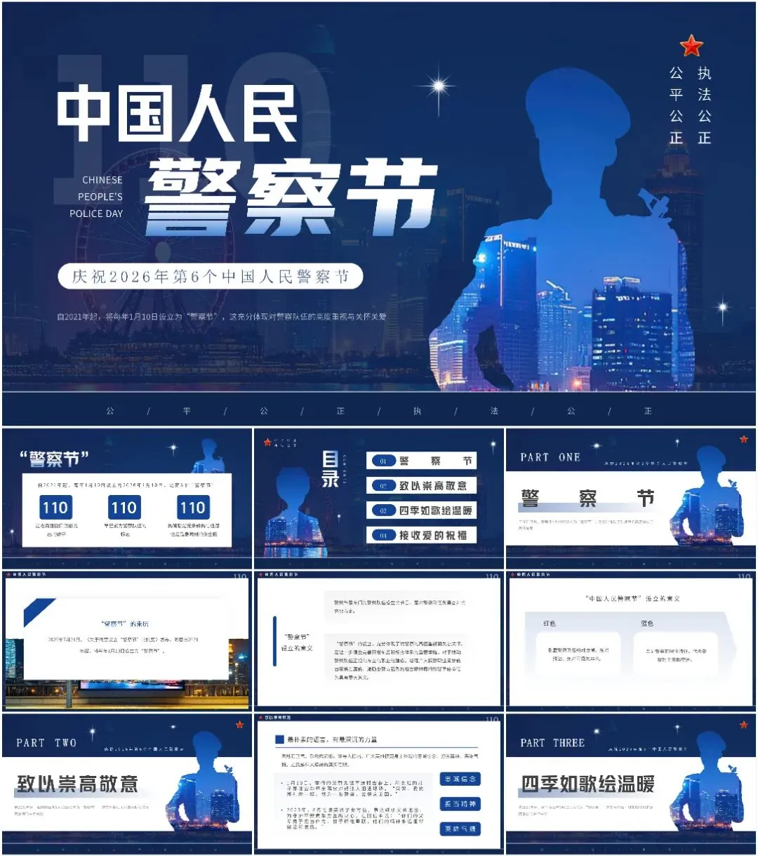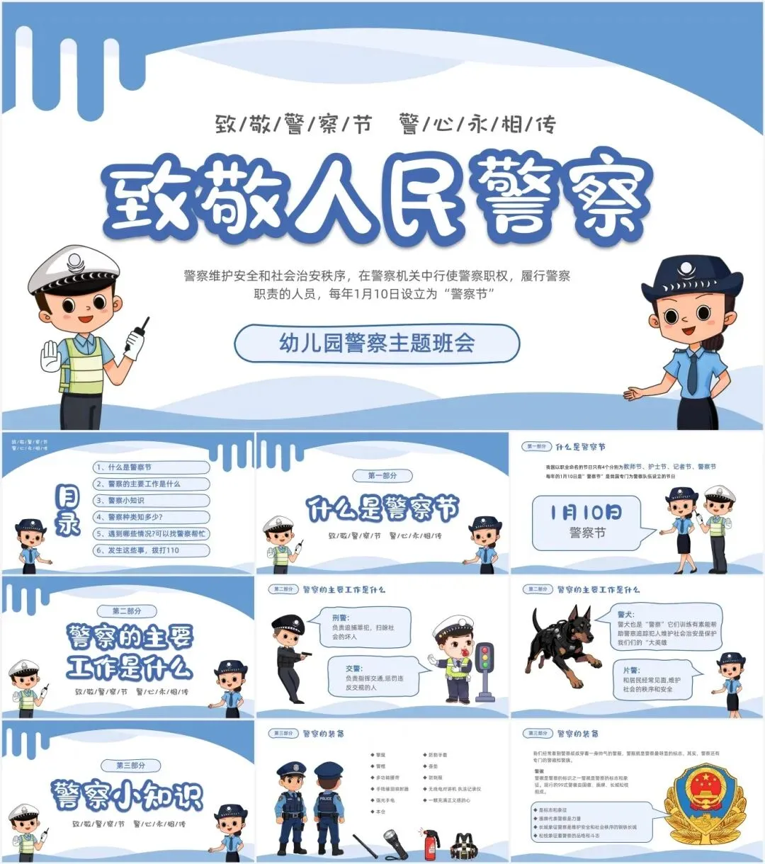 本次带来的课件适用于110警察节、中国人民警察节等相关的场合!(下载方式在文章末尾)