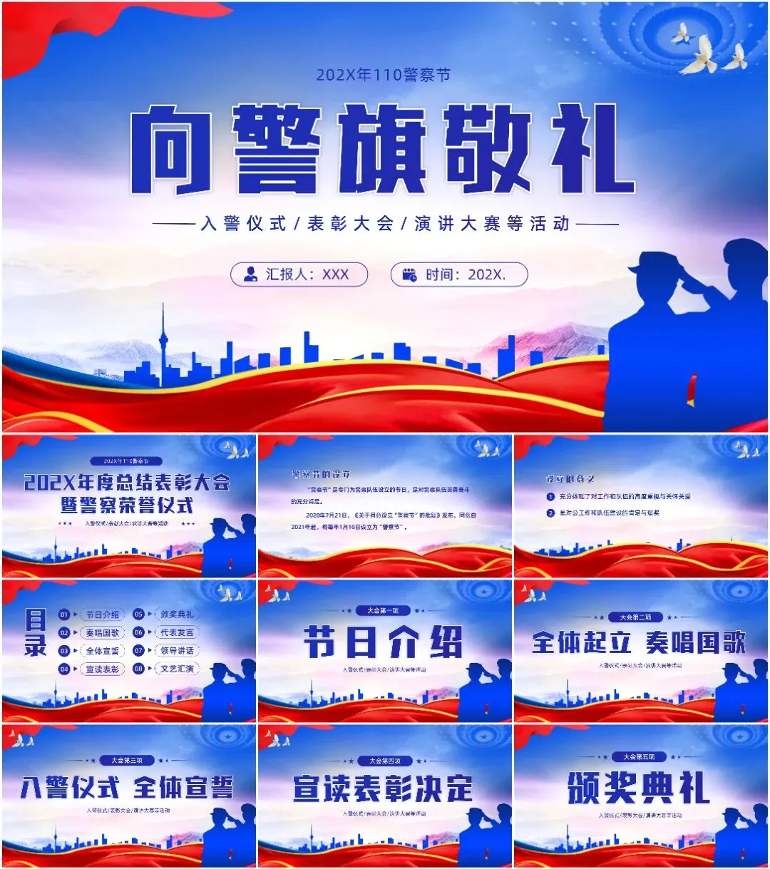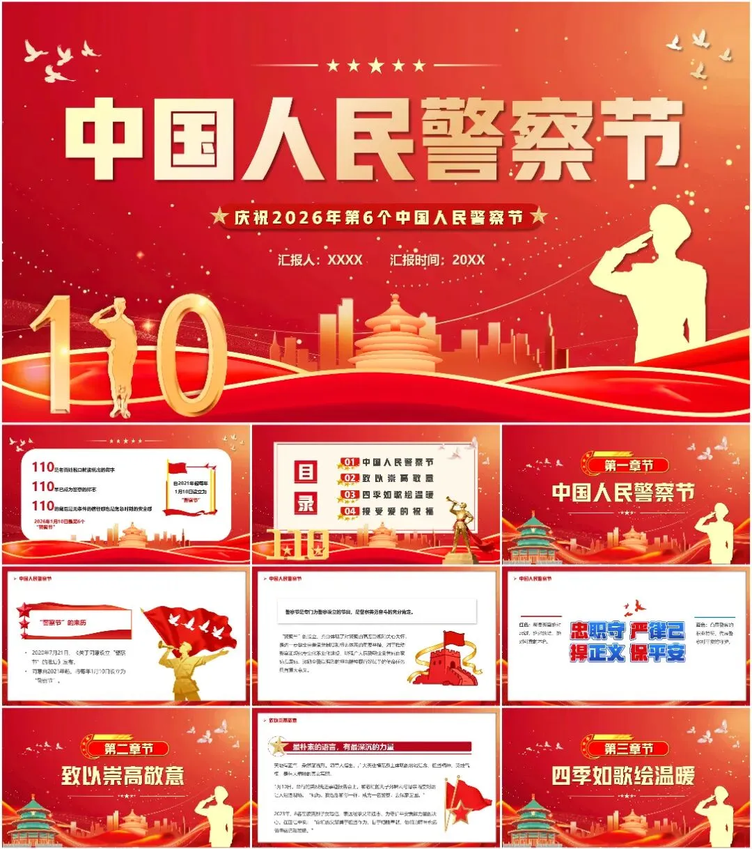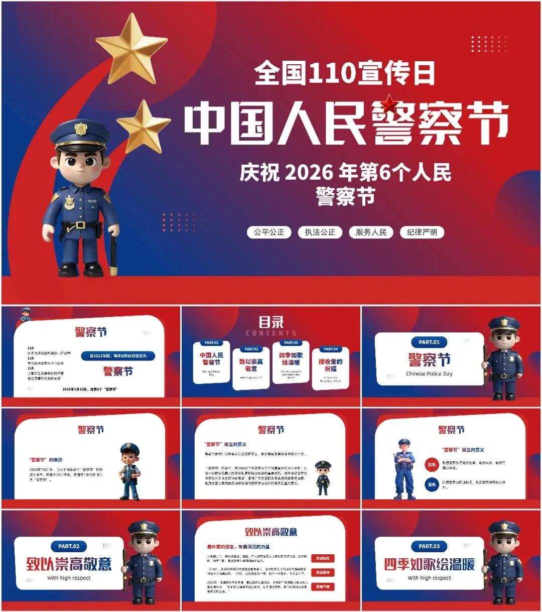 本次带来的课件适用于110警察节、中国人民警察节等相关的场合!(下载方式在文章末尾)