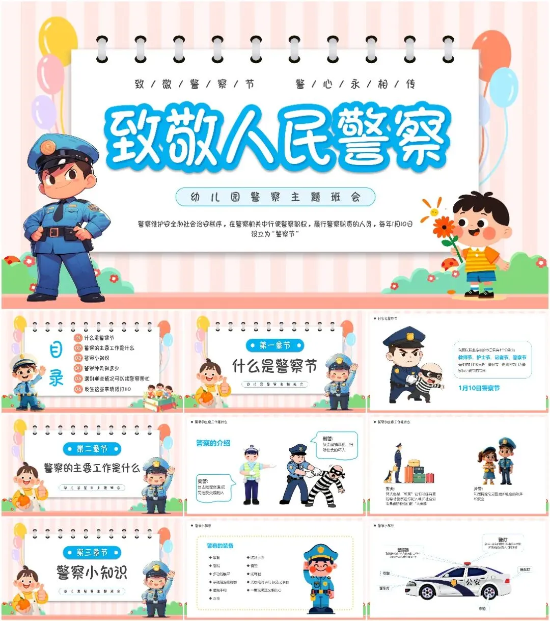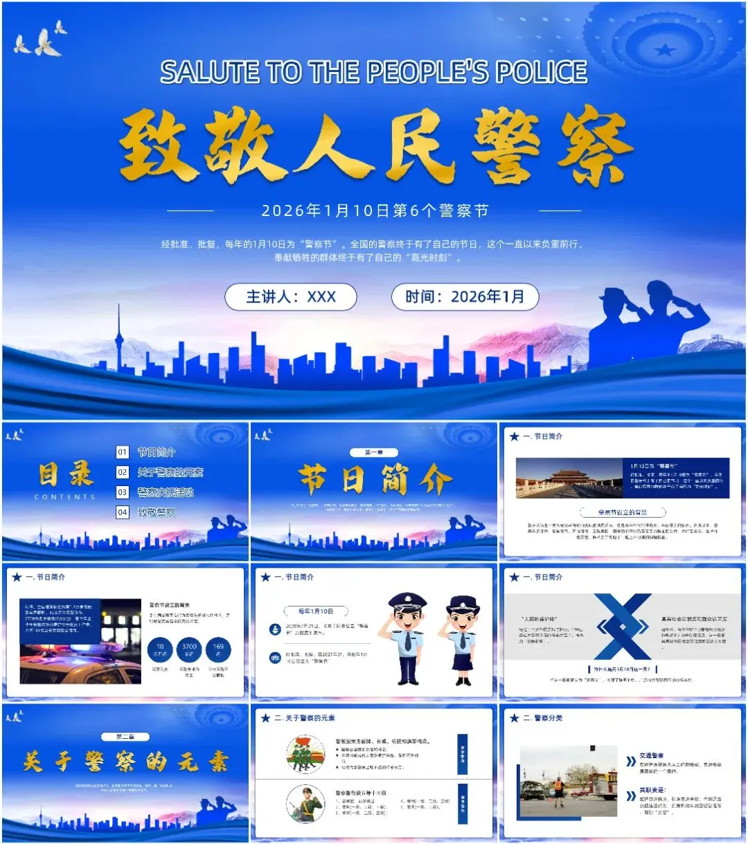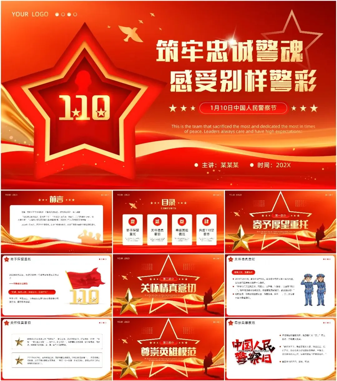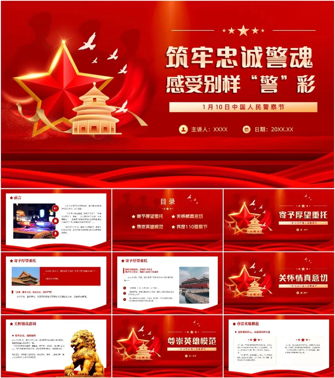本次带来的课件适用于110警察节、中国人民警察节等相关的场合!(下载方式在文章末尾)