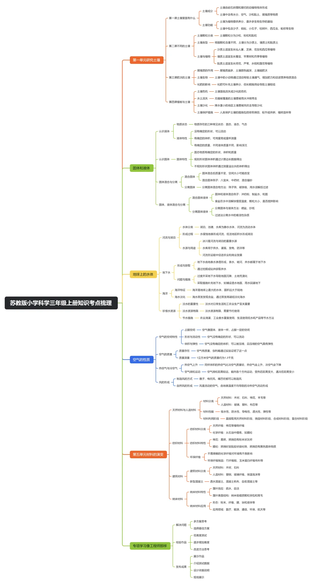 苏教版小学科学三年级上册知识考点思维导图