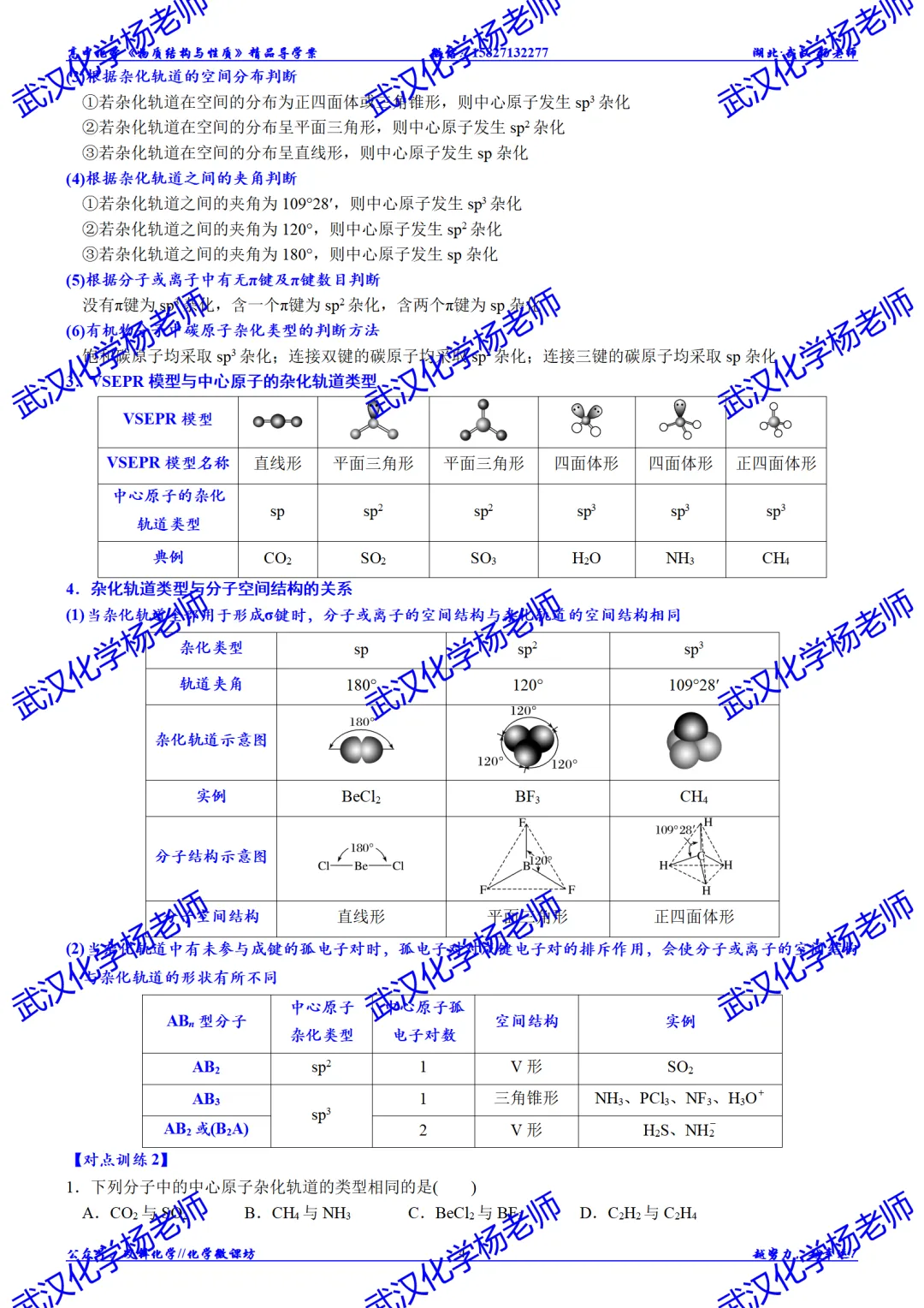 第一章原子结构与性质 第1课时 能层与能级 构造原理与电子排布式 第2课时 电子云与原子轨道 泡利原理、洪特规则、能量最低原理 第3课时 微专题1核外电子排布表示方法的判断与书写 第4课时 原子结构与元素周期表 第5课时 元素周期律 第6课时 微专题2元素推断 第7课时 本章文字说理题集训 第二章分子结构与性质 第1课时 共价键 第2课时 分子结构的测定及价层电子对互斥模型 第3课时 杂化轨道理论简介 第4课时 微专题1立体构型及杂化类型的判断 第5课时 微专题2等电子体 第6课时 微专题3键角大小的判断方法 第7课时 微专题4大π键的分析方法 第8课时 共价键的极性 第9课时 分子间作用力 第10课时 溶解性 分子的手性 第11课时 微专题5无机含氧酸分子的酸性 第12课时 本章文字说理题集训 第三章晶体结构与性质 第1课时 物质的聚集状态和晶体的常识 第2课时 微专题1晶胞中微粒数目及晶体化学式的确定 第3课时 分子晶体 第4课时 共价晶体 第5课时 金属晶体 第6课时 离子晶体 第7课时 过渡晶体和混合晶体及四类典型的晶体比较 第8课时 微专题2晶胞参数的相关计算 第9课时 微专题3原子分数坐标的分析方法 第10课时 配合物与超分子 第11课时 本章文字说理题集训 |