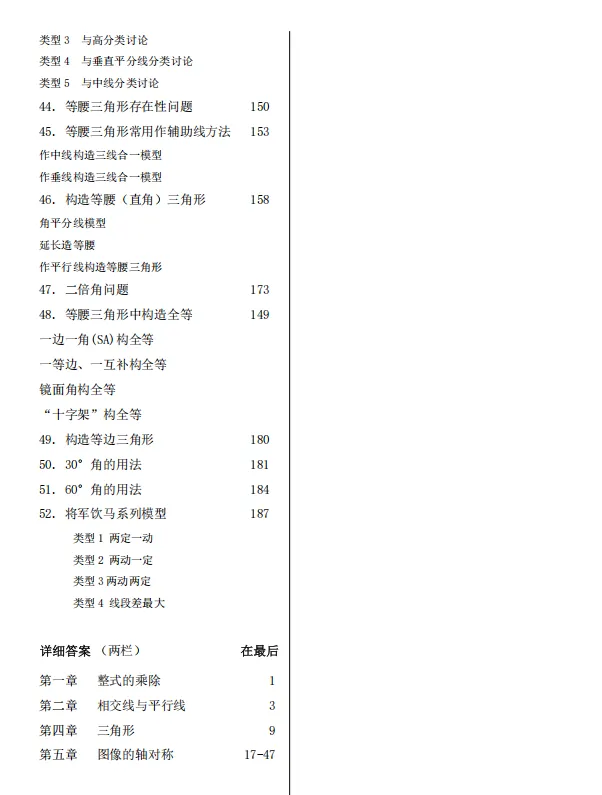 【人教版】八年级数学上学期培优----- 重难点专题模型讲义书