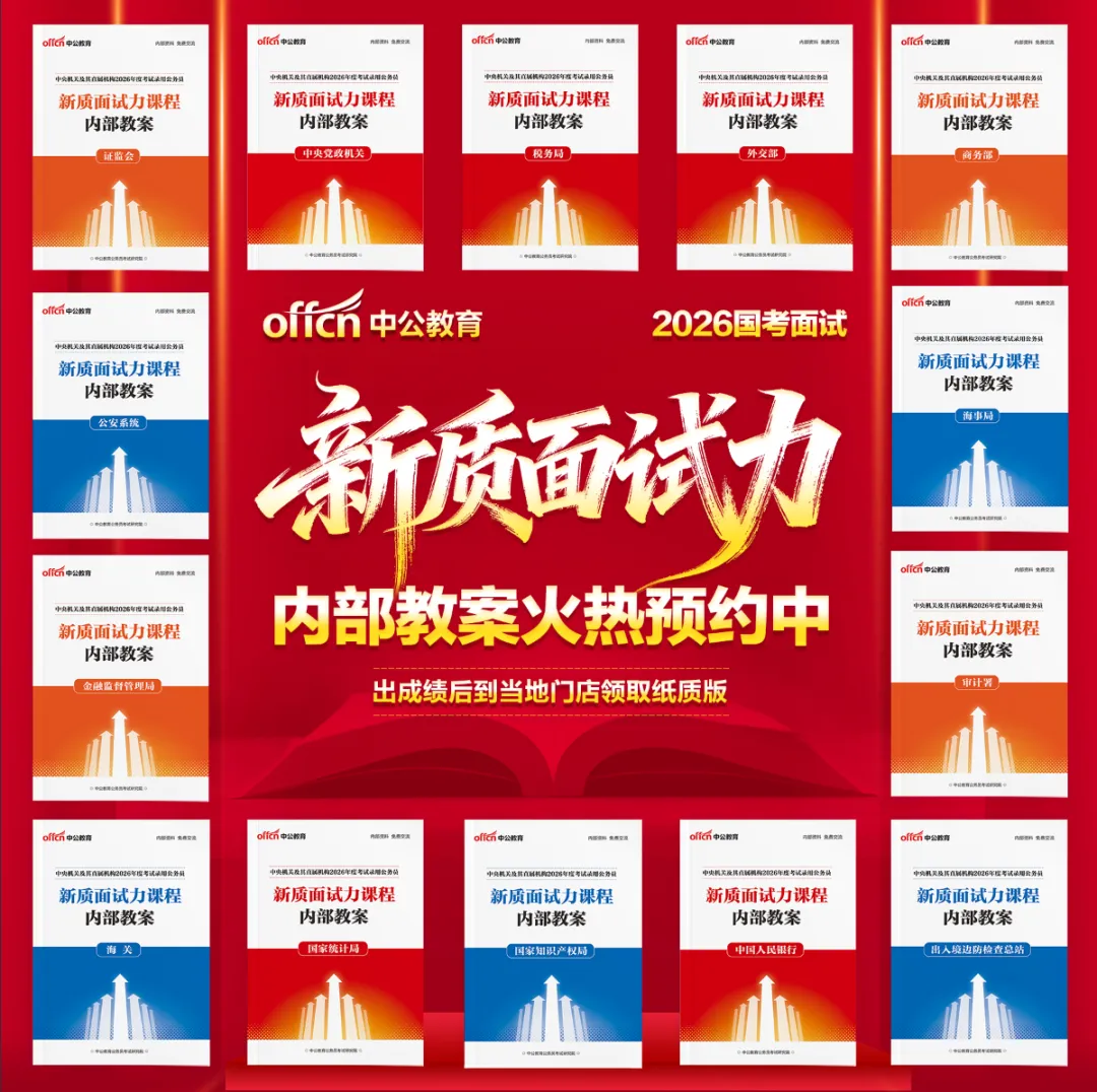 中公教育「新质面试力」2026国考面试系统专项内部教案,现已开放预约。帮助考生针对不同招录系统的特点,进行更有方向性的准备。