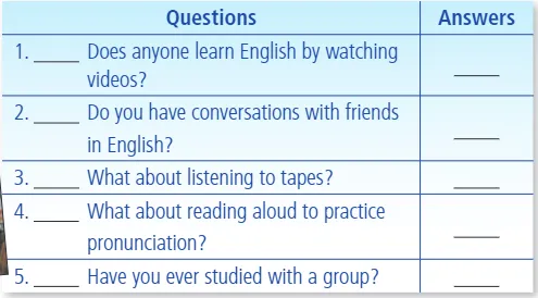 5. Have you ever studied with a group? | a. Yes, I have. I’ve learned a lot that way. |