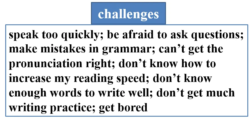 熟练运用以下短语:be interested in ; by listening to English songs; take notes ; worry about