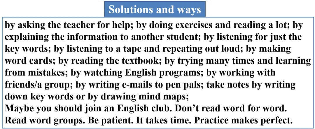 4. 能运用本课所学句型和短语谈论学习方法及向他人询问或提出建议。