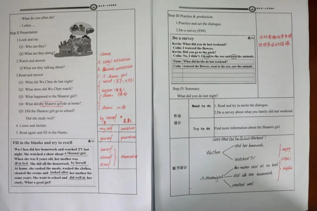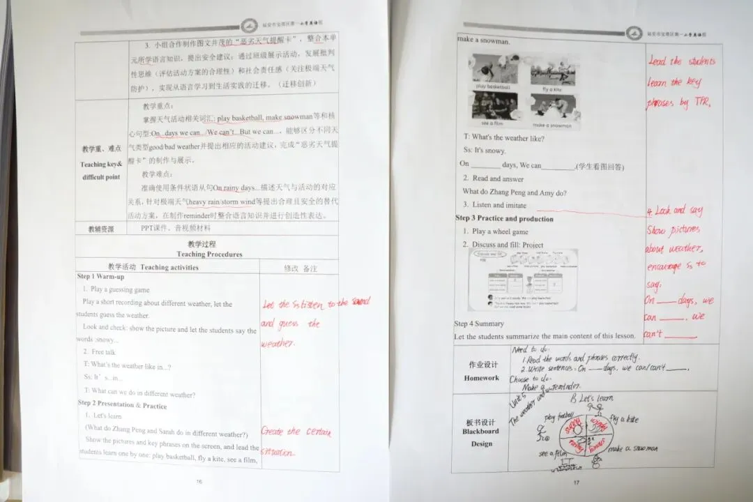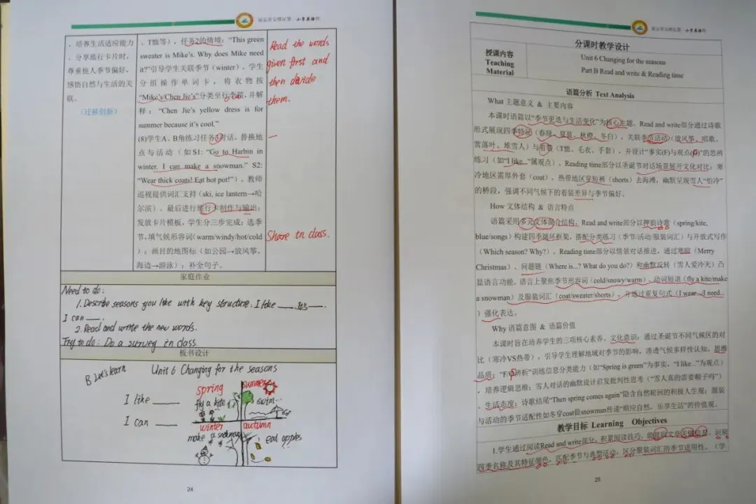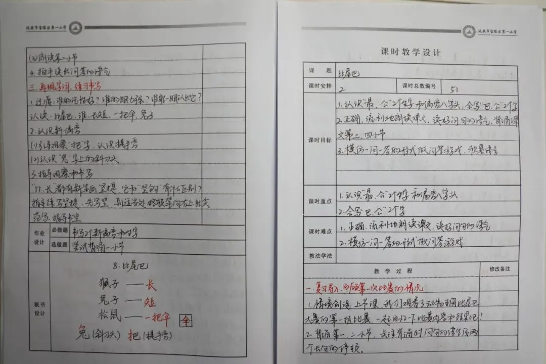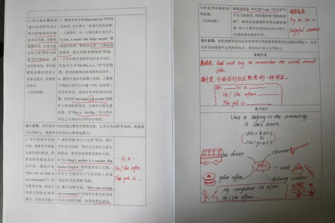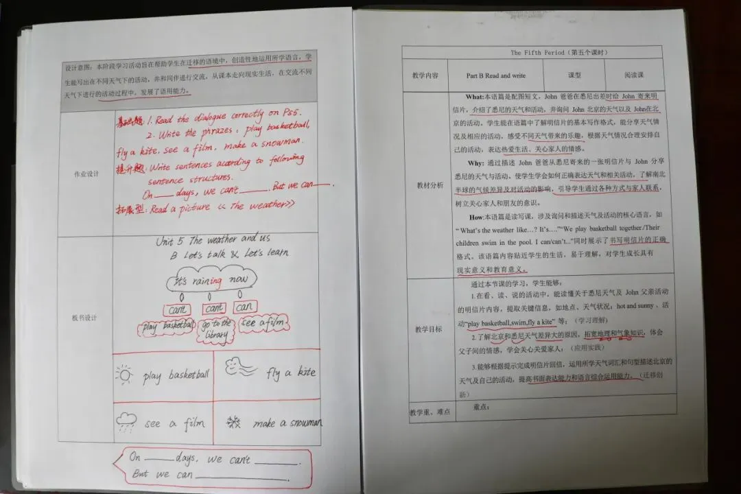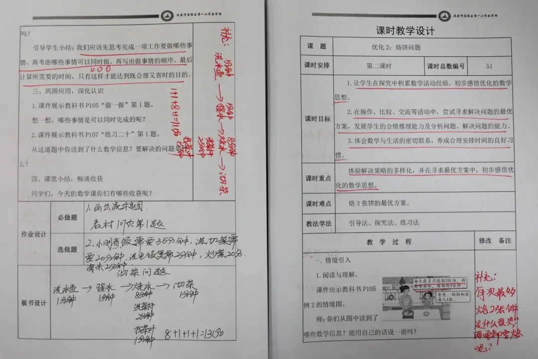 教案上工整的字迹体现了老师们认真严谨的态度,细致的标注蕴含着老师们思考探索的精神,详细的课后反思展现出老师们教学的严谨。