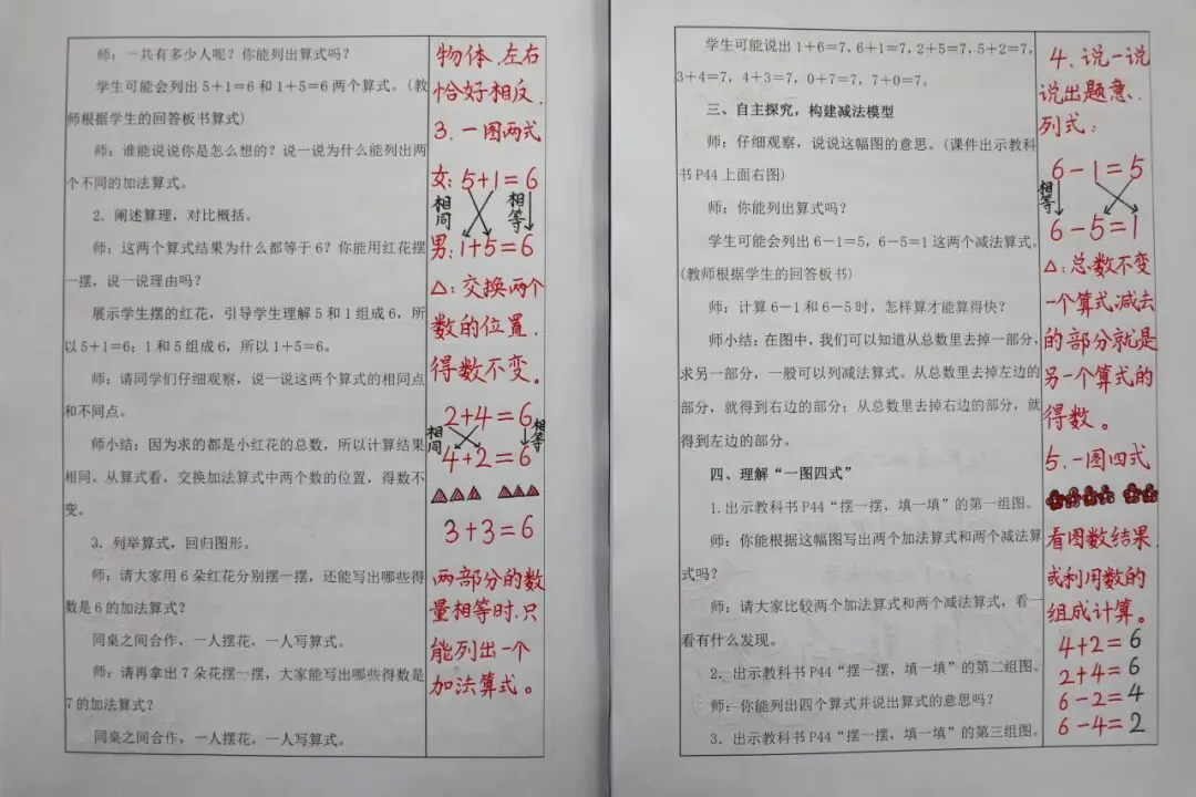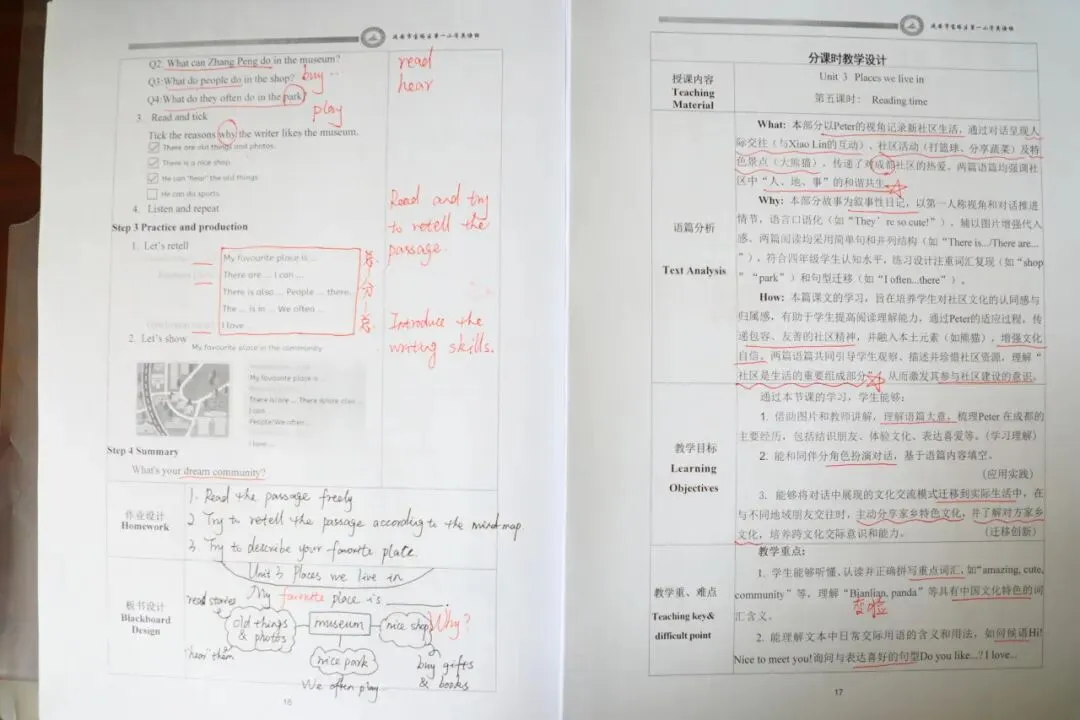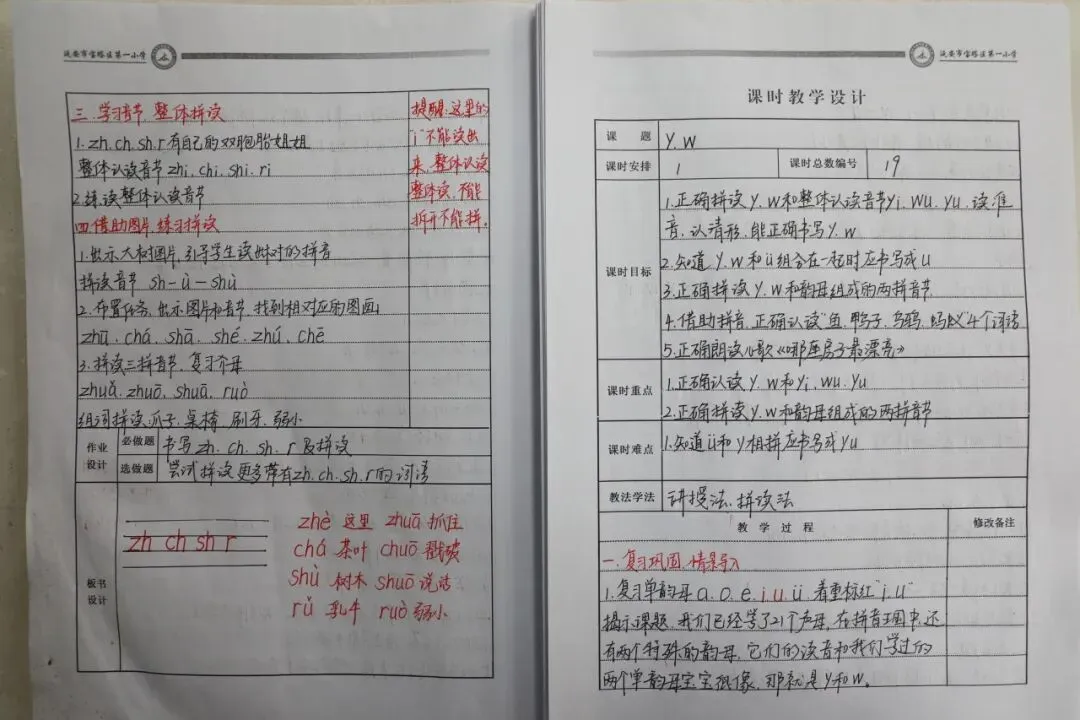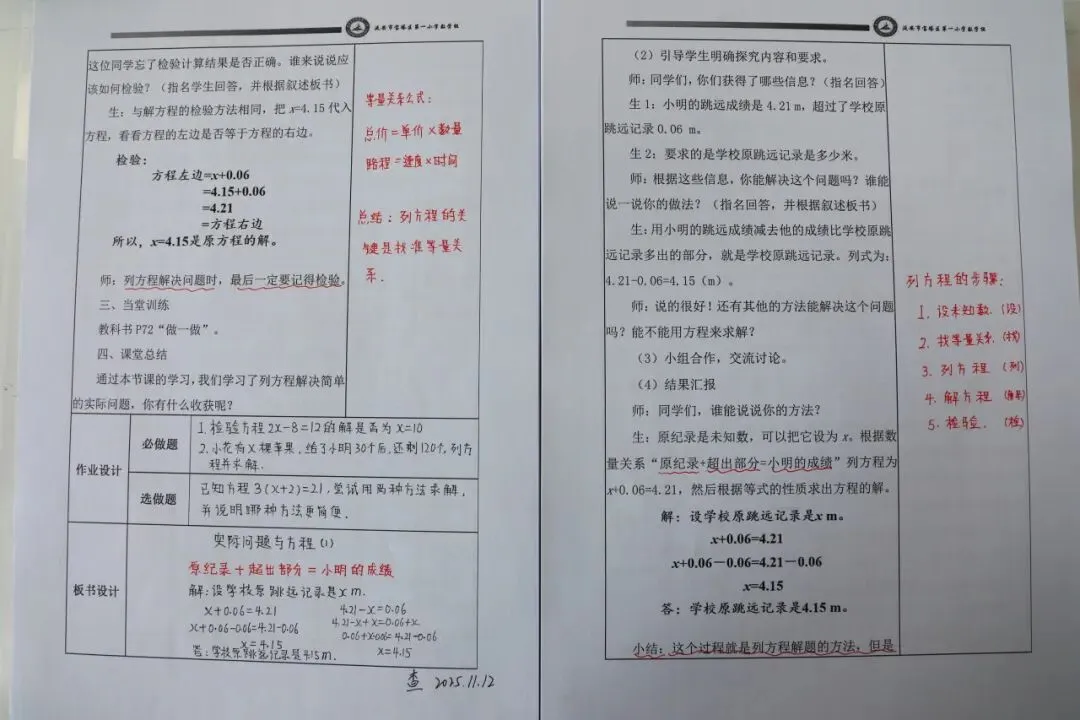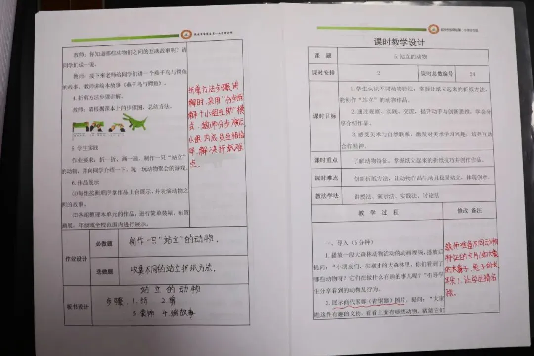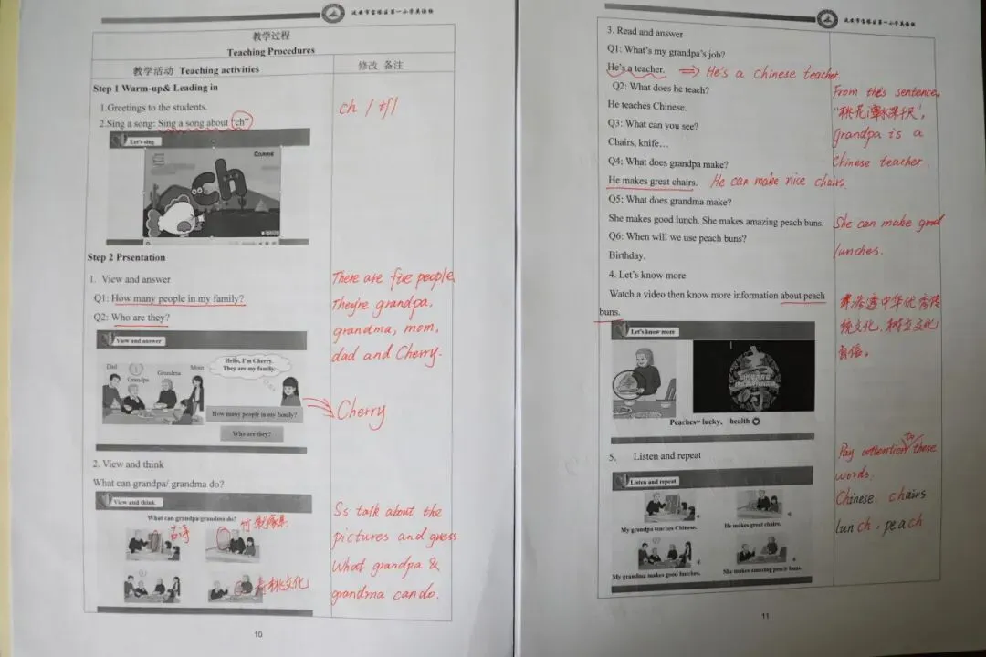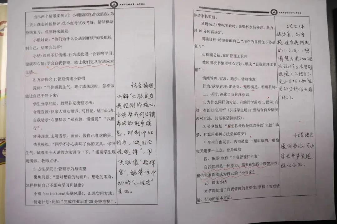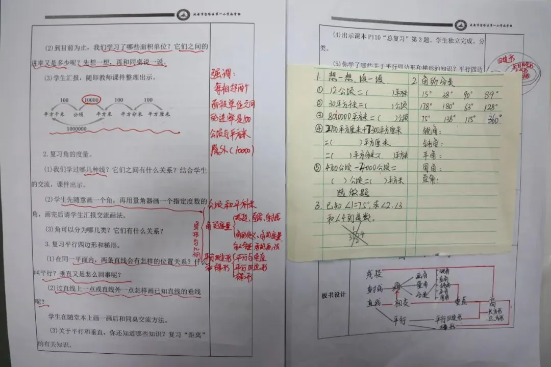 教案上工整的字迹体现了老师们认真严谨的态度,细致的标注蕴含着老师们思考探索的精神,详细的课后反思展现出老师们教学的严谨。