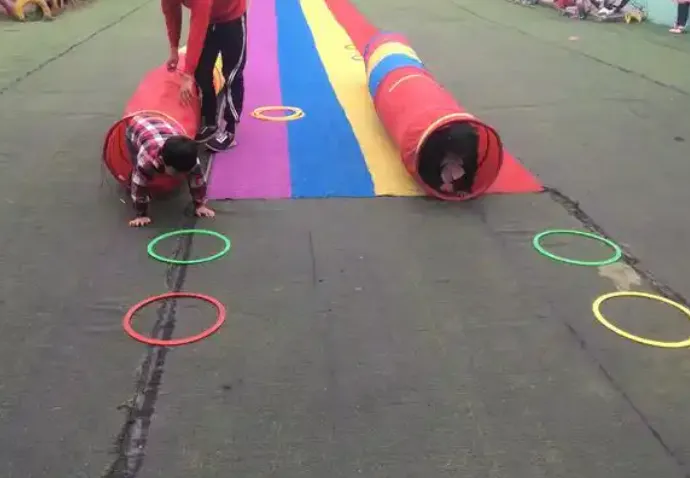 你们看,这是什么?原来是洞洞王国的大门,等下我们钻过这个洞洞就到了,洞洞王国了。到了洞洞王国后,你们要仔细找找哪里有洞洞,这些洞洞是用来做什么的哦!听清楚了吗?