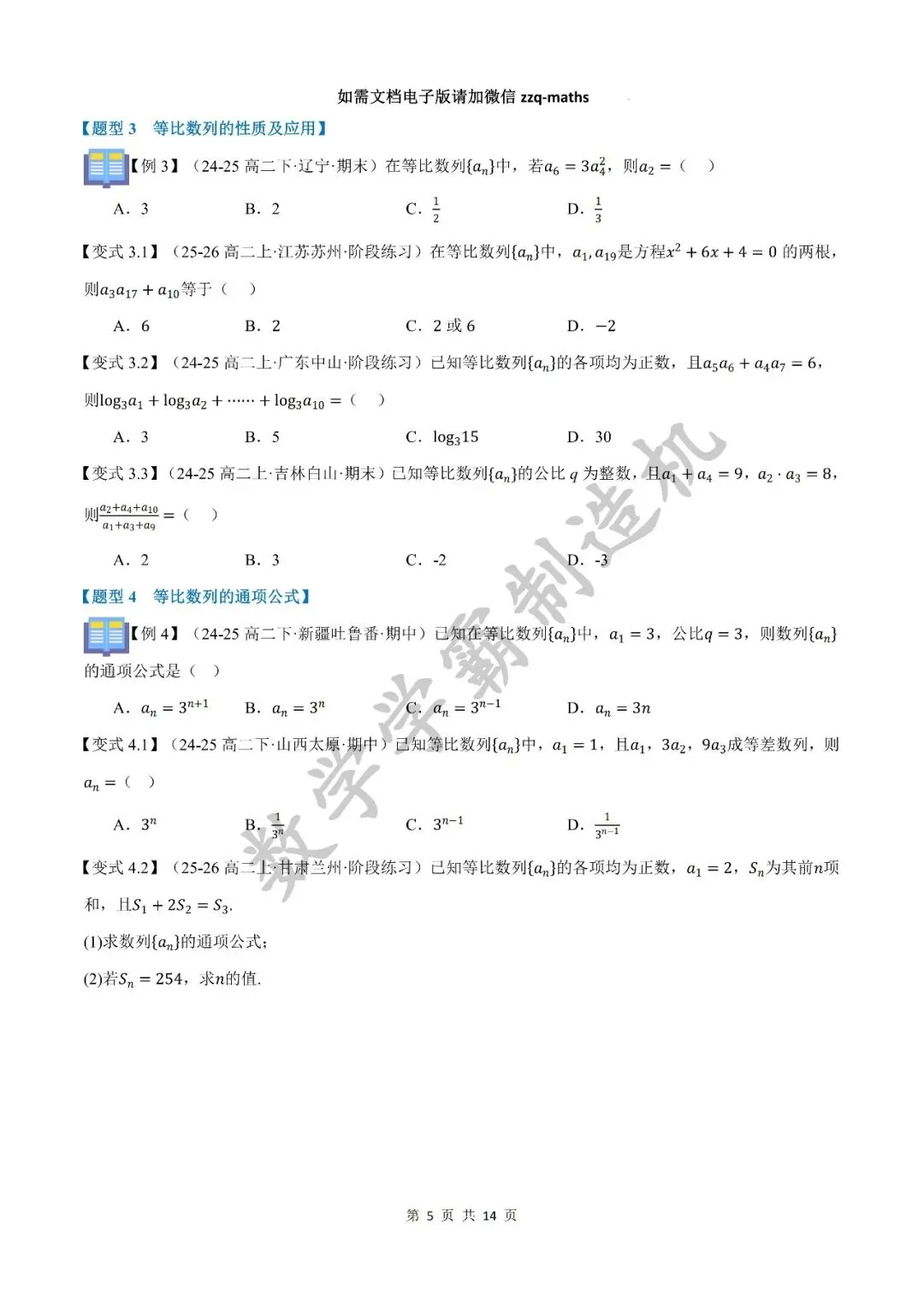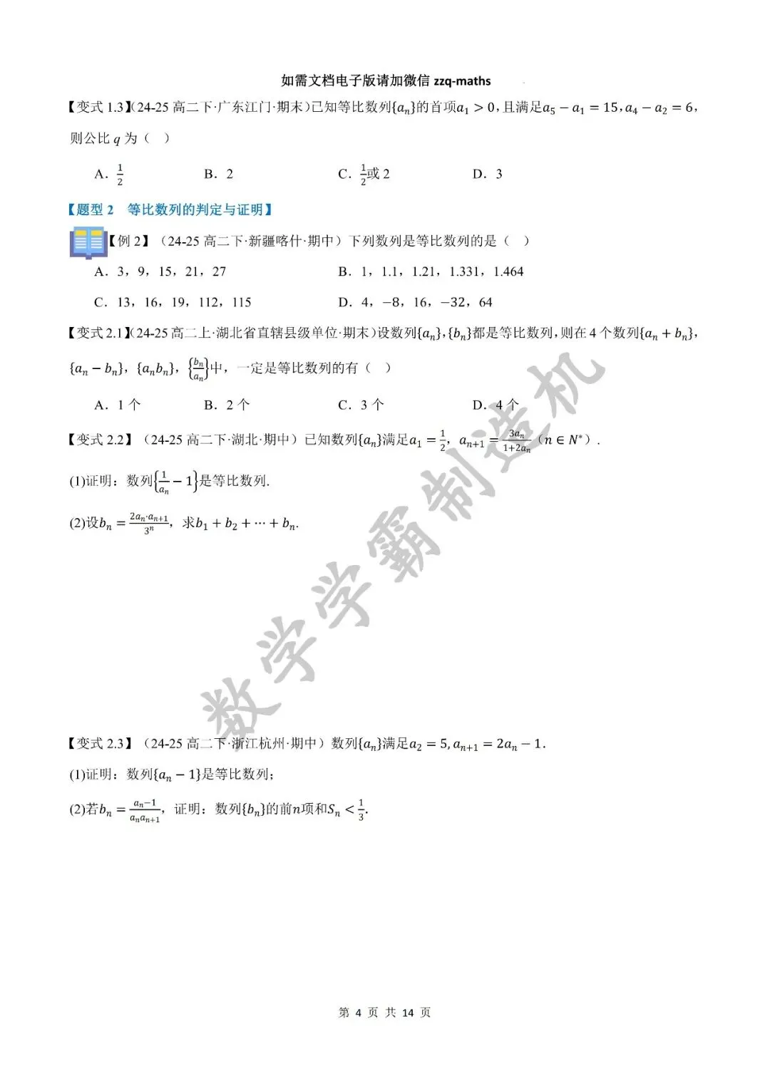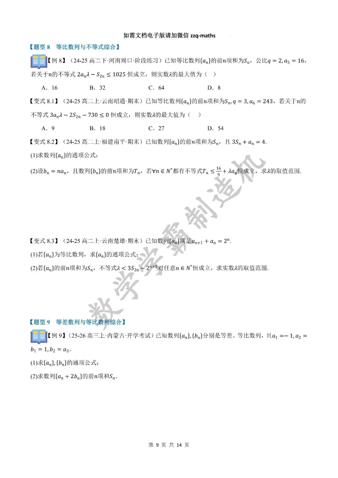本期发布的内容是2025-2026秋季高二数学讲义【等比数列九大题型】,快来看看吧!该篇完整无水印原卷版和解析版可关注公众号获取, 另外整套完整无水印原卷版和解析版可考虑加入精品QQ群获取。有任何问题可以微信公众号留言,或者添加邹老师个人微信号zzq-maths。
