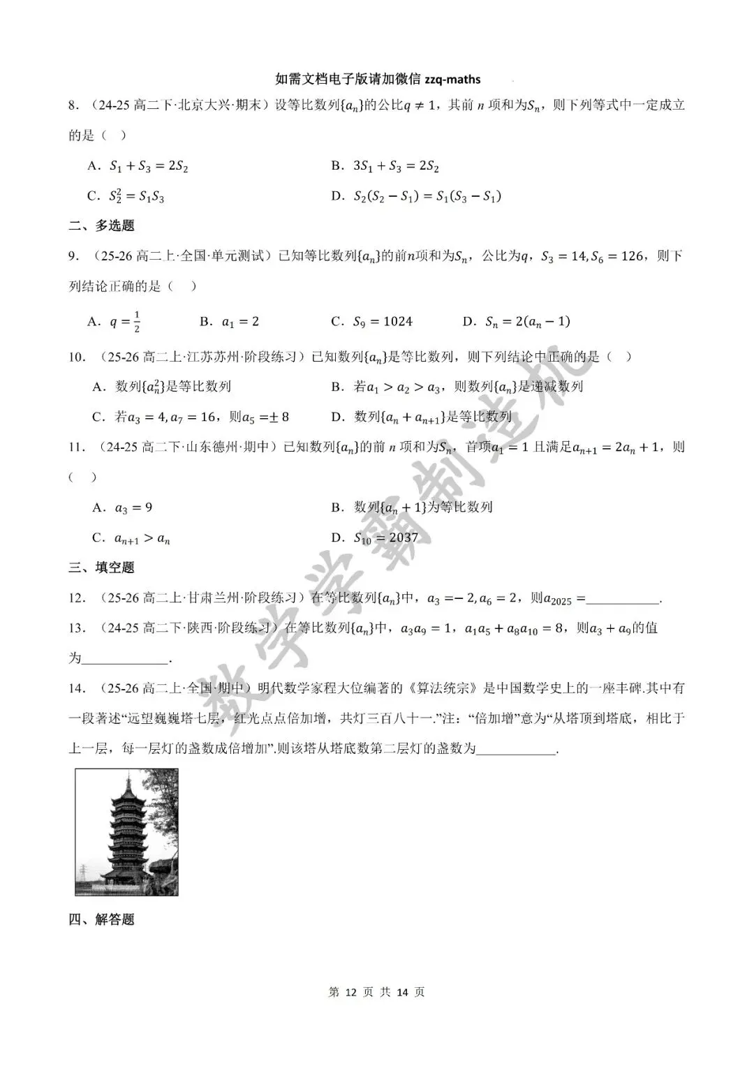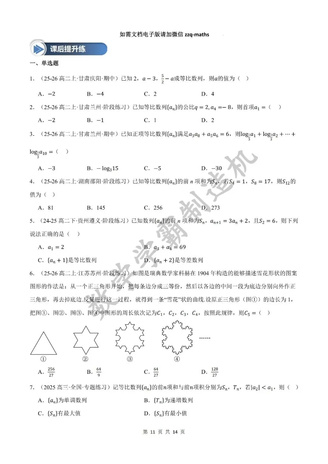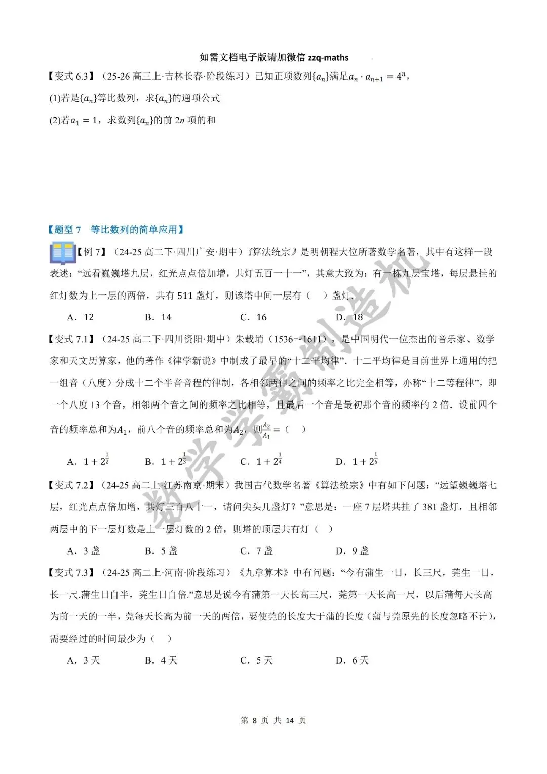 本期发布的内容是2025-2026秋季高二数学讲义【等比数列九大题型】,快来看看吧!该篇完整无水印原卷版和解析版可关注公众号获取, 另外整套完整无水印原卷版和解析版可考虑加入精品QQ群获取。有任何问题可以微信公众号留言,或者添加邹老师个人微信号zzq-maths。