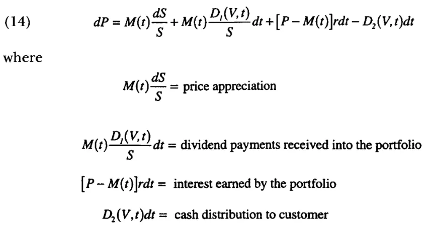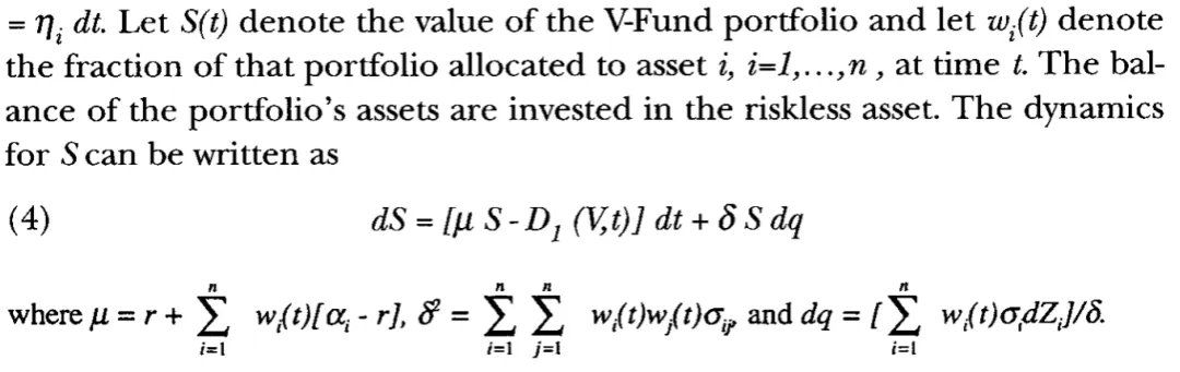 莫顿最初想要制作一个连续交易时间段里可以复制标的资产收益率和资产组合。莫顿的构想是投资组合整体是一个协方差矩阵,内部由两个结构构成:一个是股票组合本身的方差-协方差矩阵,另一个是加入保险产品后,保险产品与股票组合的方差-协方差矩阵。