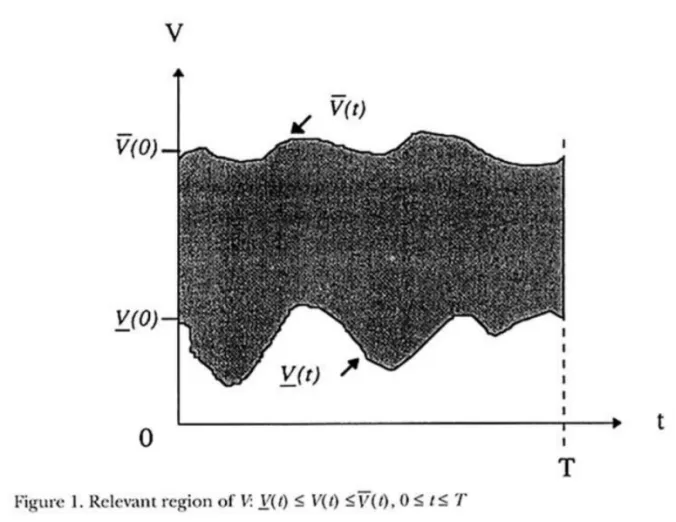 我确信市场一定存在如下的情况,这是莫顿研究的贡献:由于指数在AB之间不透明,因此看跌期权价格保单的方差不会随着时间t趋近于T到期,而趋近于零。因为在这个AB阶段不透明,所以期权价格的方差无法计算,它的方差始终很大,这是一个不透明混沌时间段的数据。甚至在期权到期日时,可能会发生跃迁情况。例如一个重大事件在不透明阶段的混沌期发生,使得看跌期权保单的方差突然变得很大。