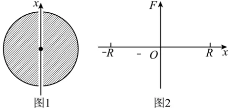 (2)如图1所示,假设沿地轴的方向凿通一条贯穿地球南北两极的小洞,把一个质量为的小球从北极的洞口由静止状态释放后,小球能够在洞内运动,不考虑其它星体的作用。以地心为原点,向北为正方向建立轴,写出小球所受引力随变化的函数,并在图2中画出其图像。