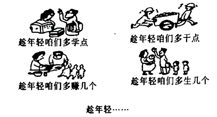 ABC:漫画《趁年轻.》中不同的人对年轻的时候该干什么,有不同的考虑,这是人们在考虑生活中的一些问题,不能说立场不同,也没有受到主客观条件的制约,只能说明每个人思维风格不同,在思维速度、方式、质量和结果上表现出了差异,AB不符合题意,C符合题意。
