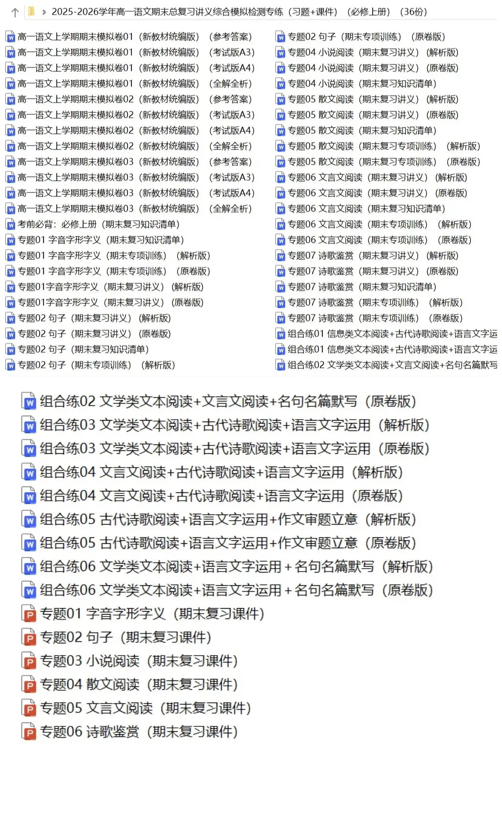 【2025年高一语文必修上册】期末复习讲义知识清单综合检测专练(习题+课件)36份含全解全析(全部完整电子版文档文末有下载方式)