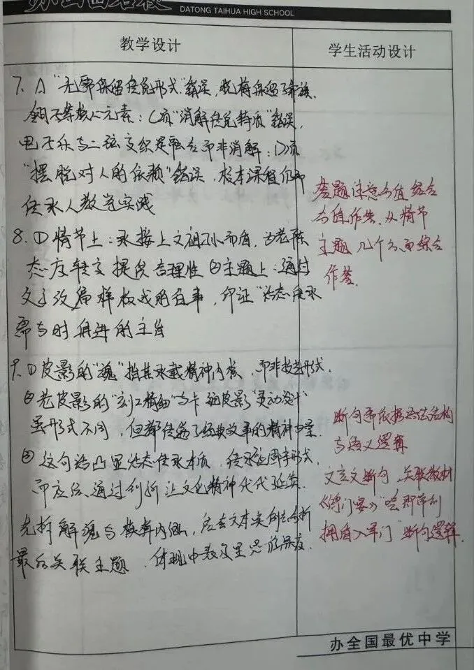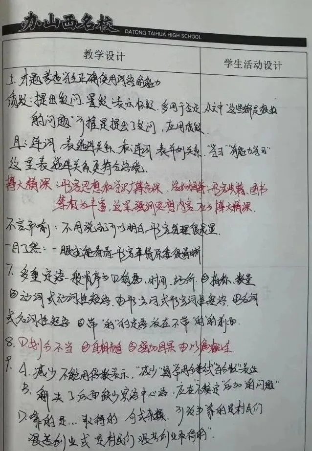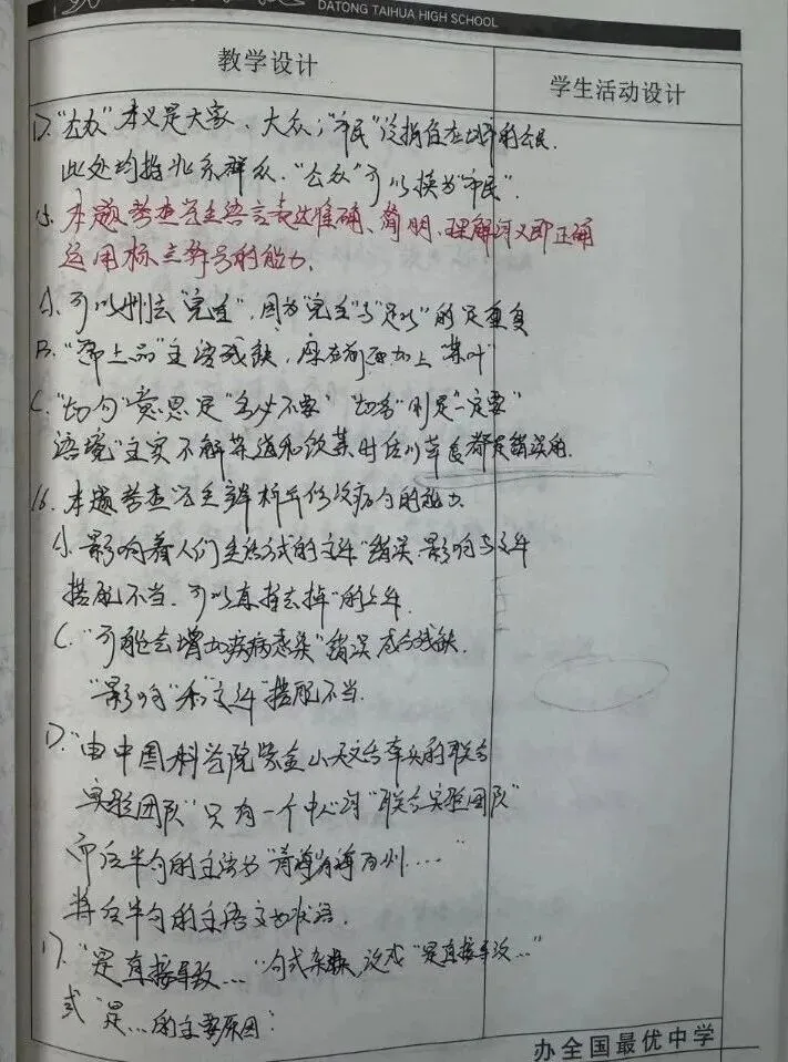 教案本上的红笔批注、补充笔记,记录着教学相长的历程。课后的反思与调整、学情反馈后的方法优化、同类题型的拓展思路,让每一次备课都不是简单的重复,而是持续迭代的精进。