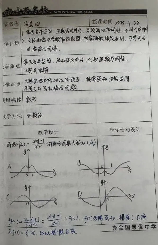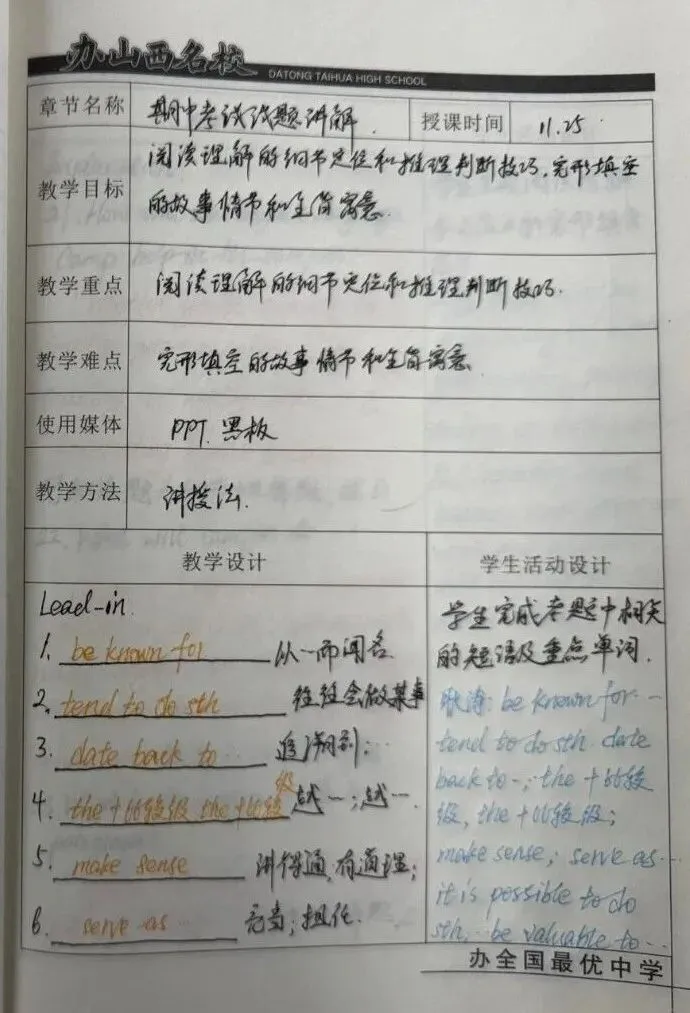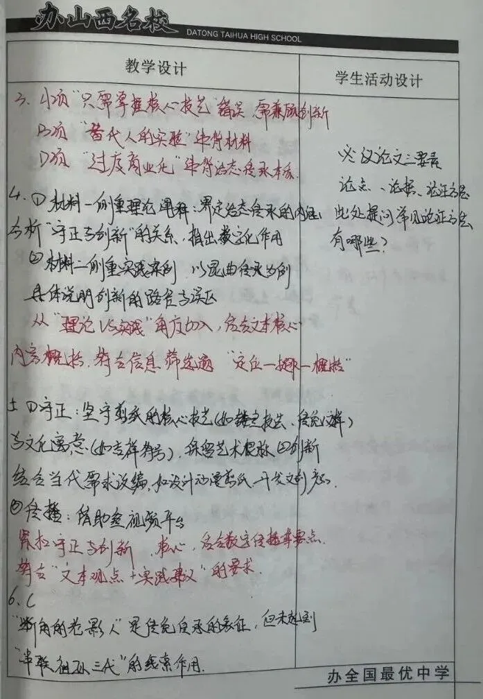 教案本里,藏着不止于知识的传承。教师们将价值观引领融入教学细节,在知识点讲解中渗透品格教育,在例题设计中传递奋斗精神。那些针对不同层次学子的个性化指导、鼓励性话语的预设,彰显着“因材施教”的教育温度,也呼应着学校“培根铸魂,启智润心”的育人理念。