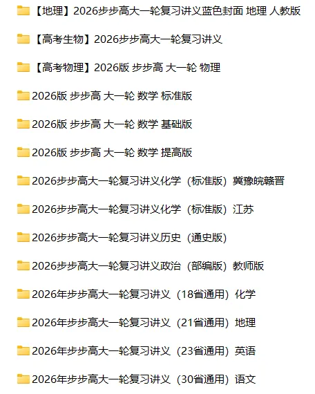 《26版步步高大一轮复习》获取电子文件资料下载请观看至文末可免费领取哦!【关于电子版书籍的观点说明】大多数情况下,电子版并不是让大家全本打印出来的,毕竟页数很多,费时费力。电子版主要是让同学们先看看,对书的内容、难易程度、跟自己的水平是否匹配等多个维度做个判断,感觉OK的话再购买实体书学习,这样避免书买回来才发现不好用而在书架上落灰。此外,少数章节或习题有帮助的话,也可以选择性打印出来练习。(电子版资料全部为网上获取资源,仅供参考,侵权即删,觉得书不错的可自行购买实体书,多谢理解~)