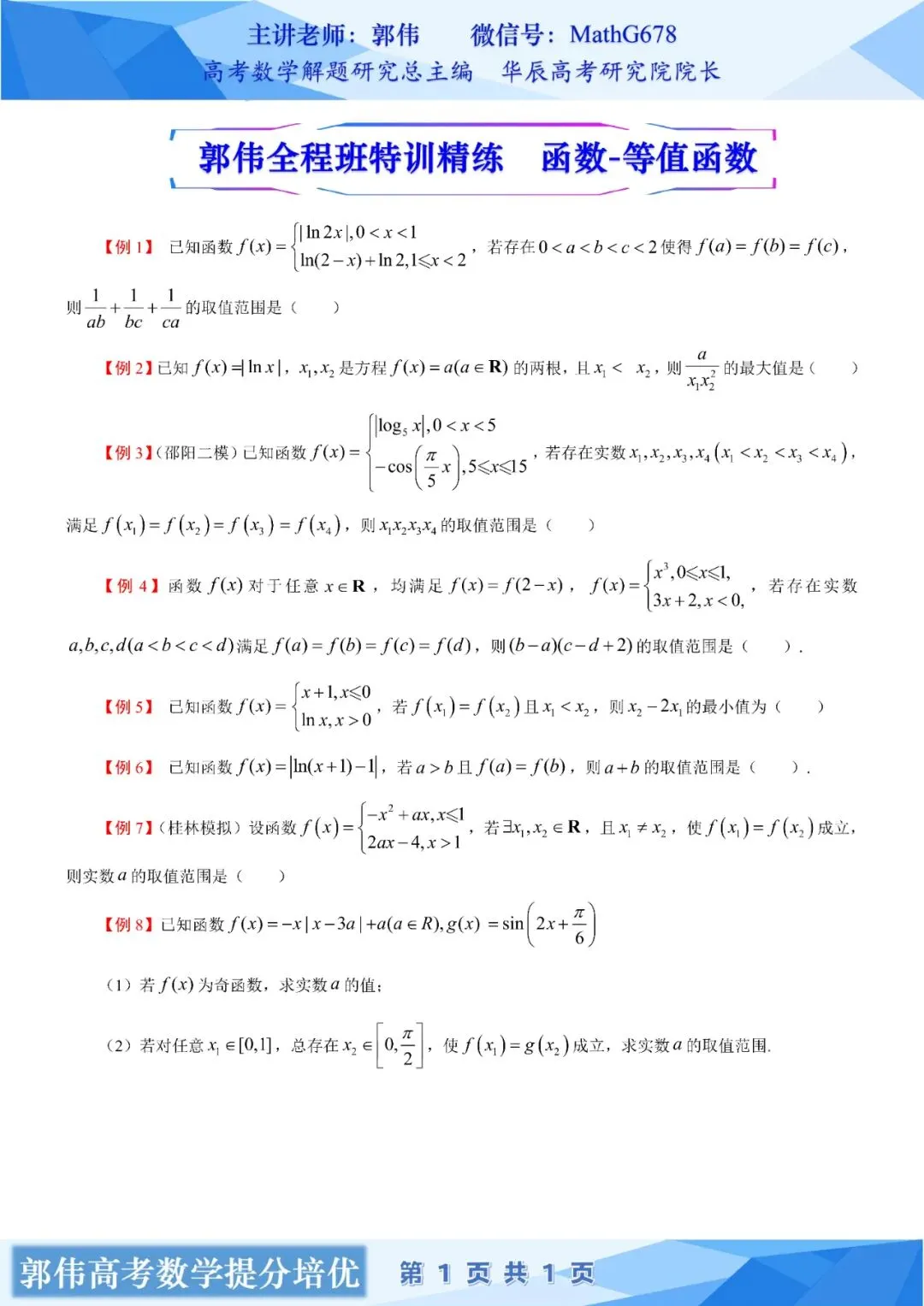 >【高分讲义】第23期:等值函数