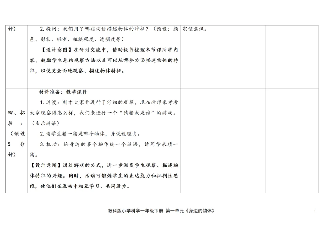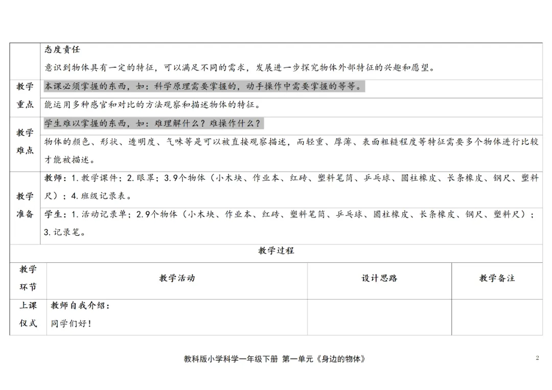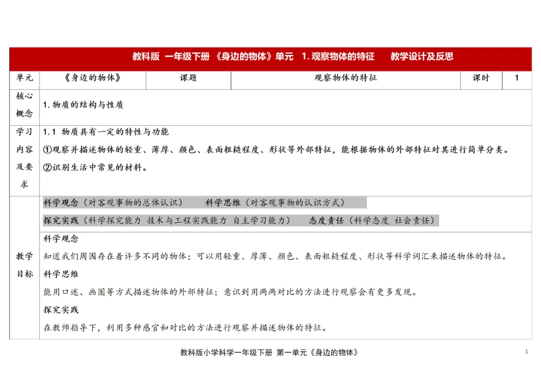 (新教材)教科版科学一年级下册核心素养教案+课件PPT(2026春)
