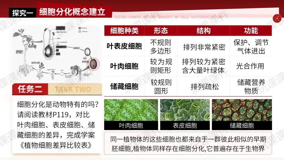 教学设计逻辑环环相扣,从“现象”到“概念”,从“特点”到“本质”,从“分化”到“全能性”,遵循学生的认知规律。