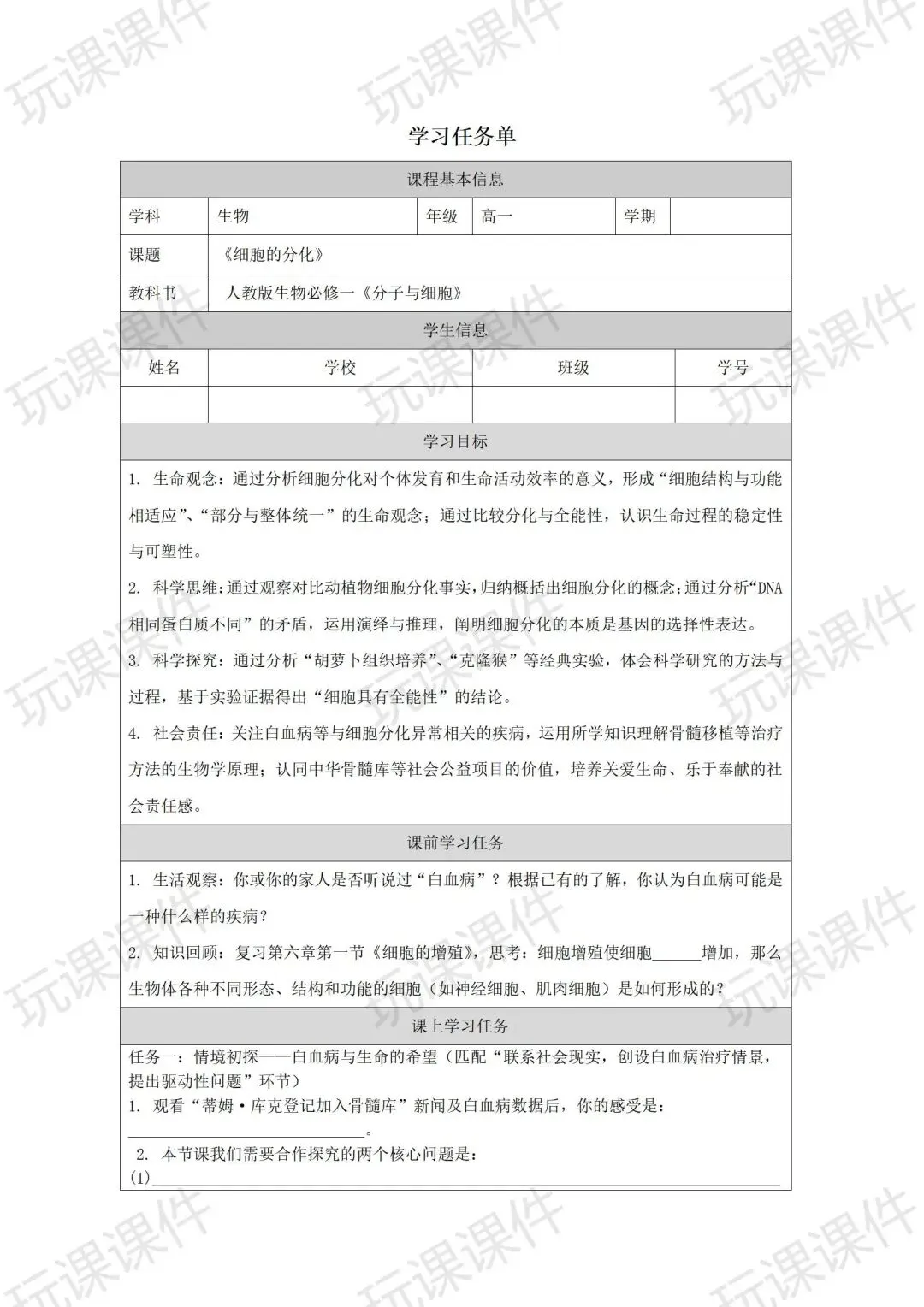 “白血病” 情境贯穿设计《细胞的分化》课件,这么有创意的设计思路值得学习!丨玩课
