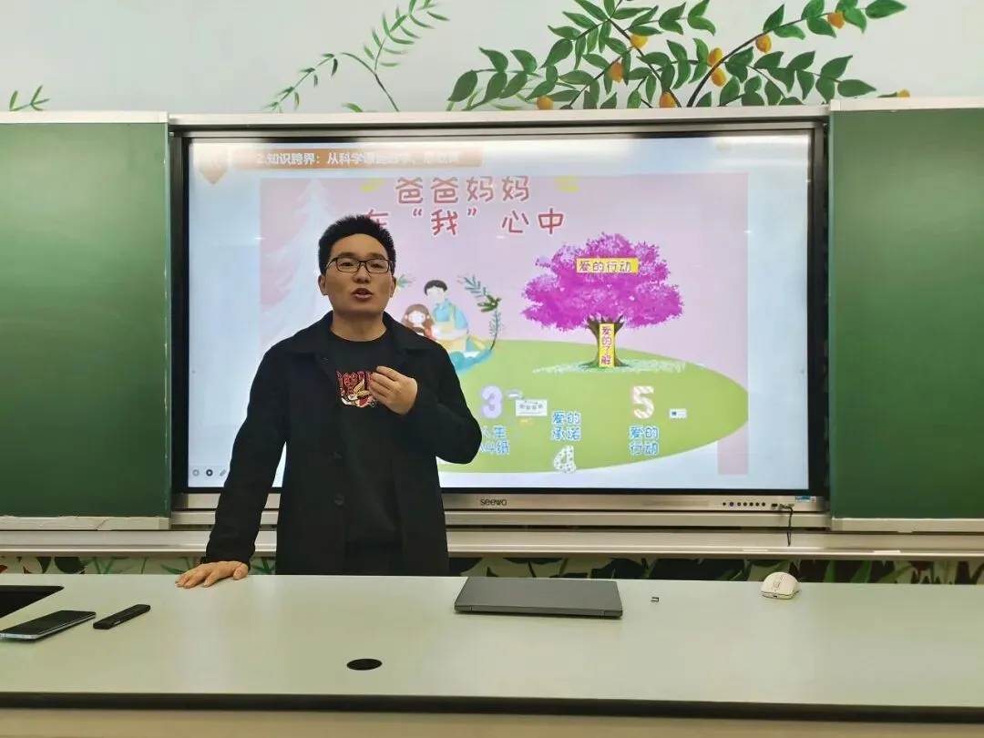 在研讨过程中,张红军老师还通过实际案例展示了跨界教育在课堂教学中的应用。他以“爸爸妈妈在‘我’心中”的跨学科课程为例,将科学、语文、思政等学科知识有机融合,让学生在学习科学知识的同时,也能感受到家庭的温暖和亲情的珍贵。这种跨学科的教学方式不仅激发了学生的学习兴趣,也培养了学生的综合素养和创新能力。