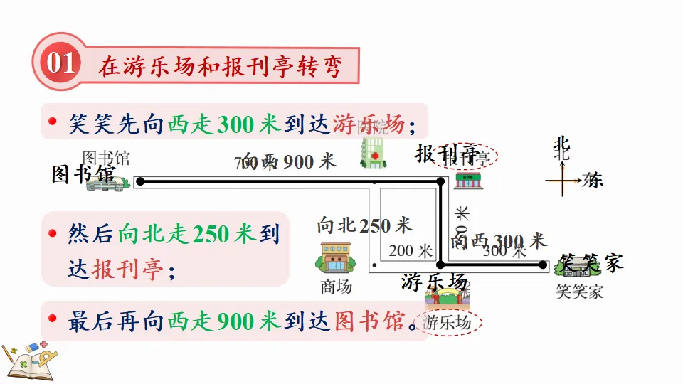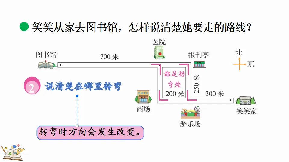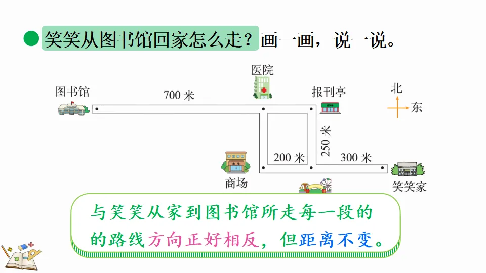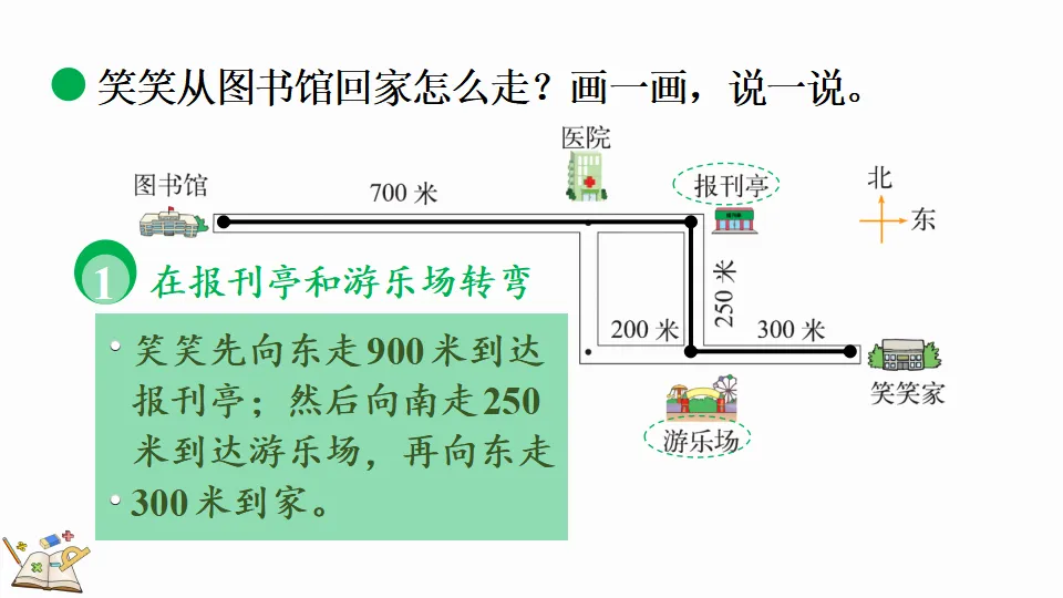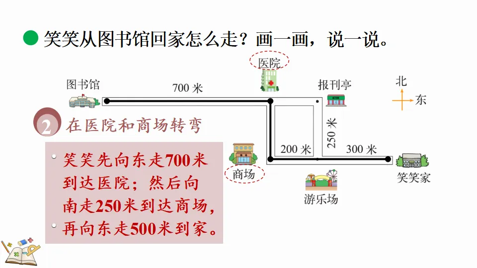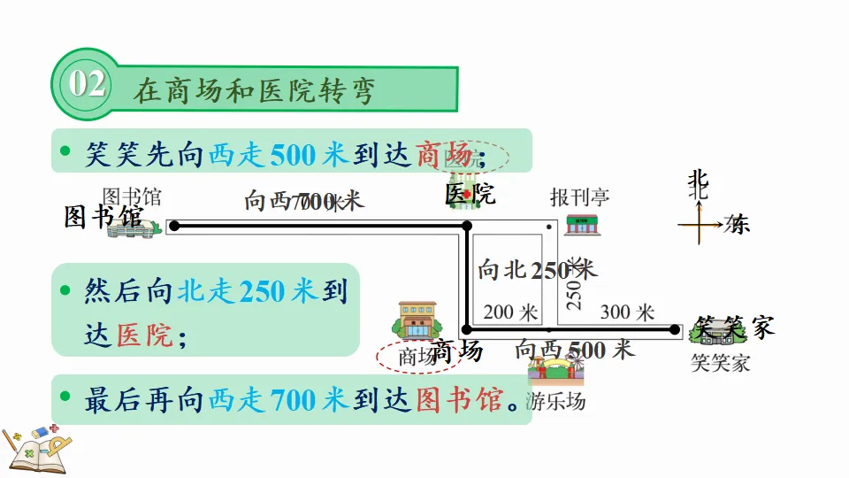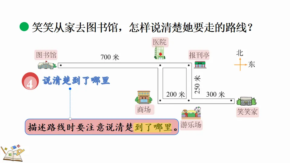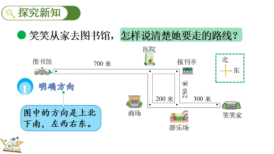 当前位置:首页>课件>方向与位置去图书馆PPT课件北师大版数学四年级上册