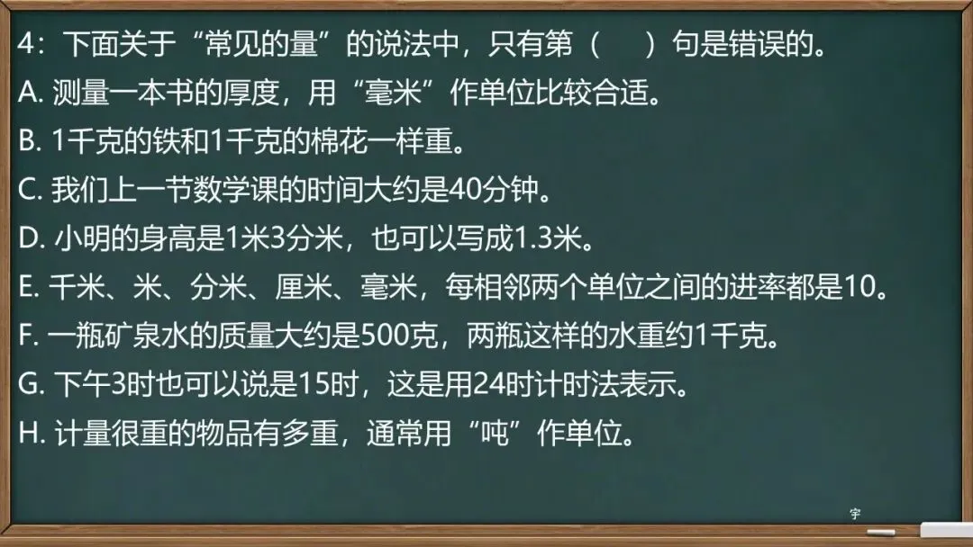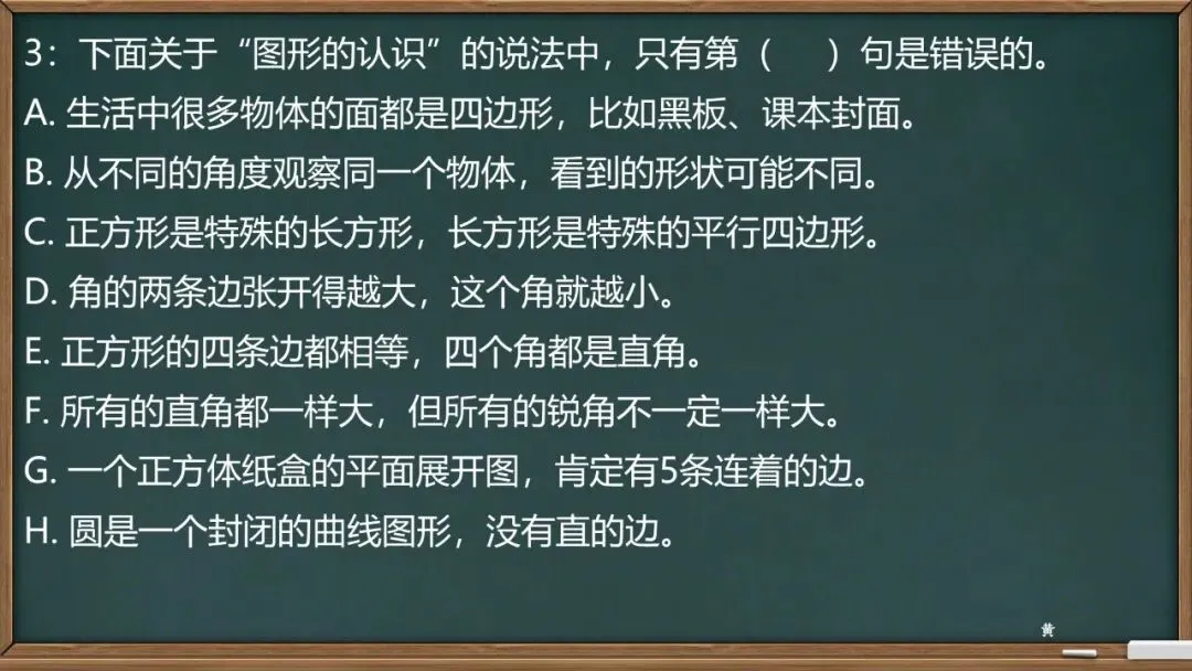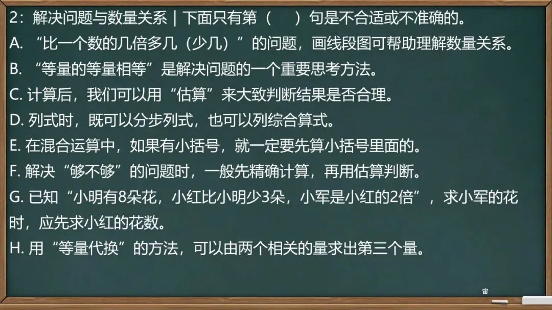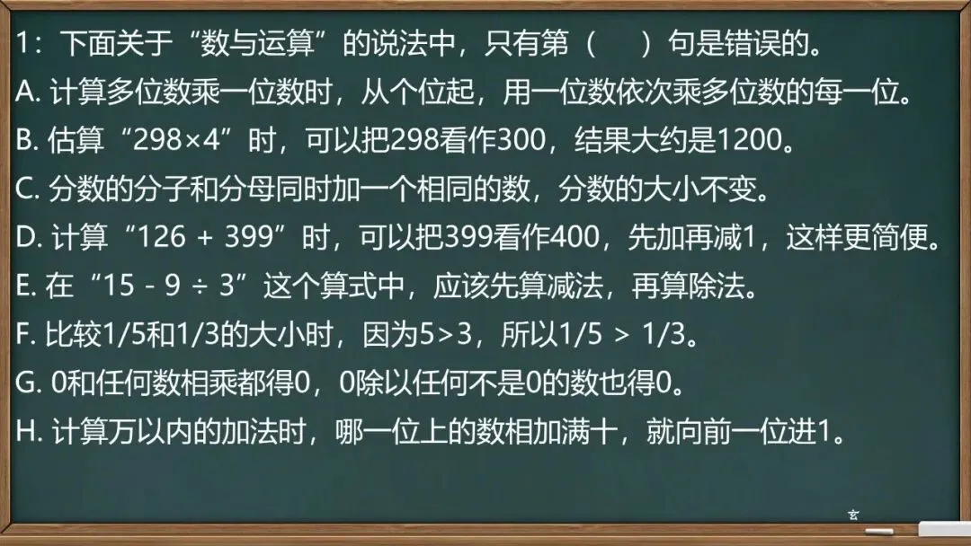 期末复习开始,我对课本上的《复习与关联》,尝试由AI给出5道涵盖面广的选择题,每题针对一个领域或专题,选项中只有一句是错的,要求选出这句。