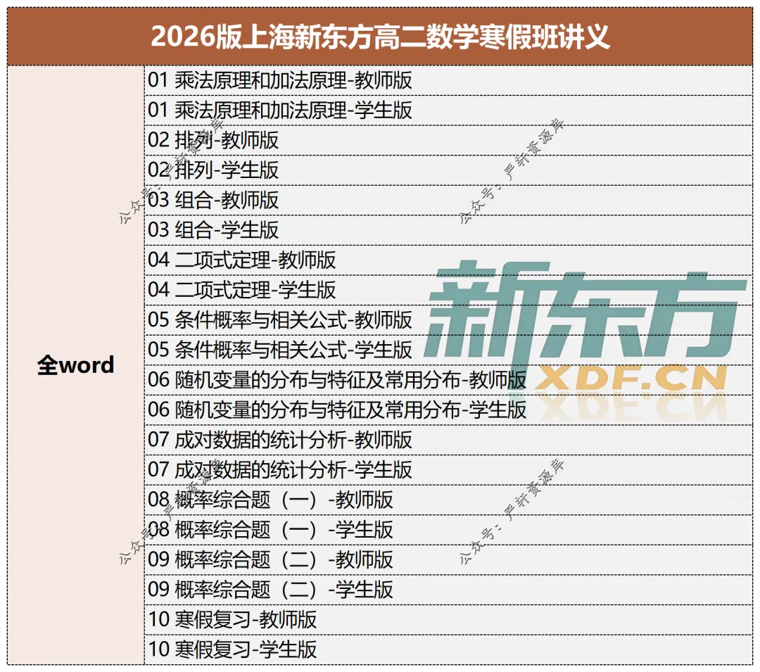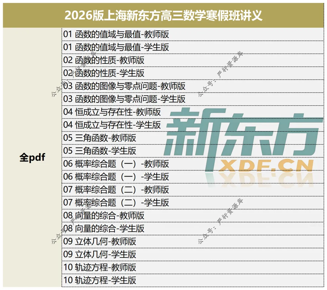 小编今日分享:2026版上海沪教版新东方高中数学寒假班讲义