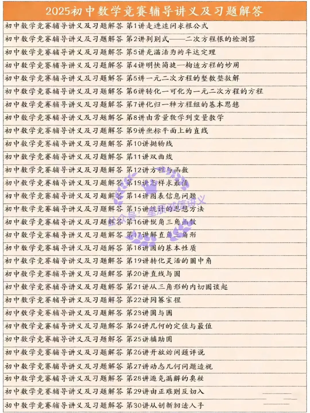 >中考数学竞赛几何+辅导讲义一套中考数学高分进阶的完整解决方案,包含竞赛辅导与几何培优两大专题答案均在最后几页