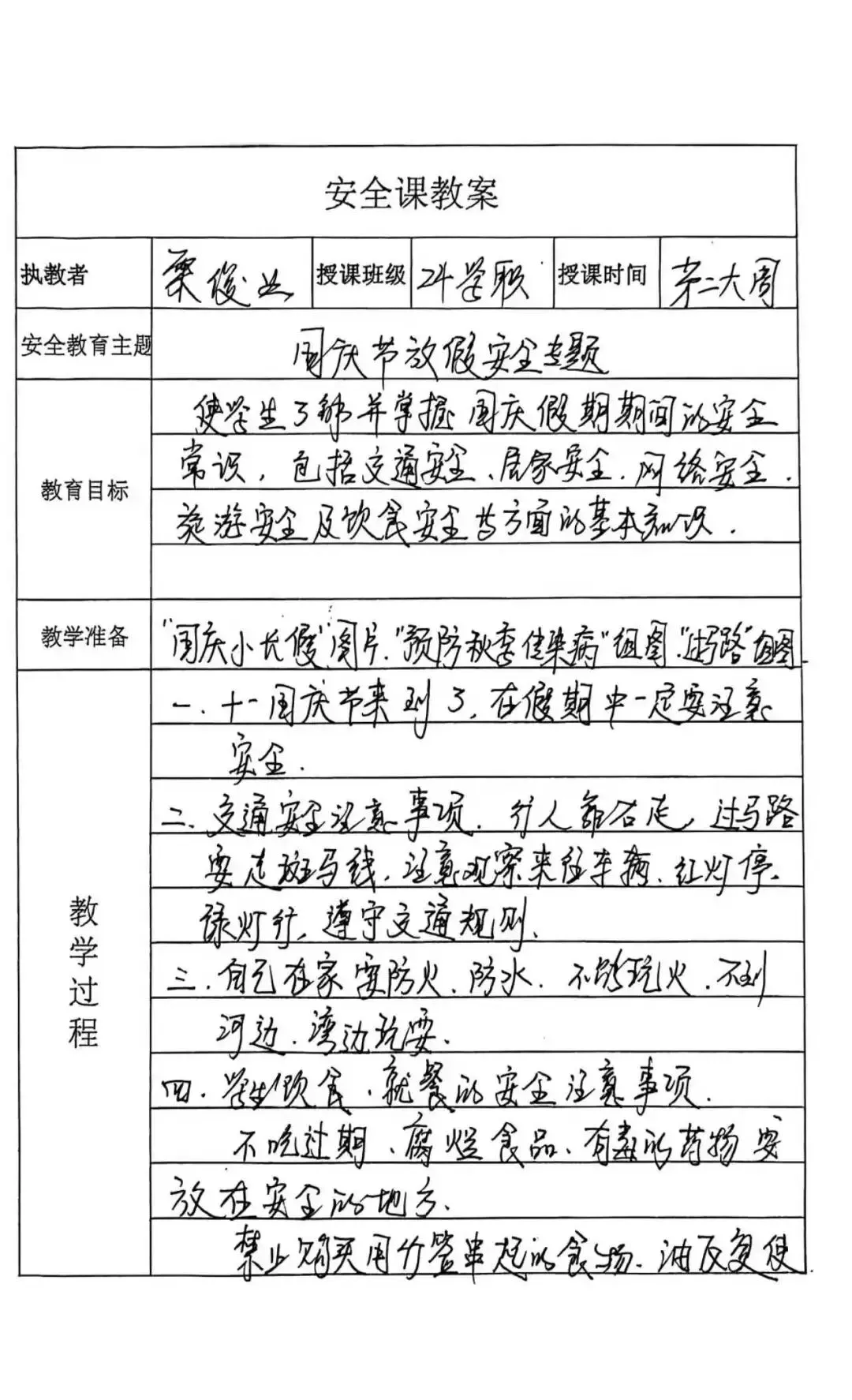 为强化教师安全教学意识,提升教案撰写质量,让安全教育更具针对性和实效性,我校举办安全教案评比活动。活动中,老师们围绕交通安全、消防安全、防溺水、校园欺凌防治、心理健康等多个校园安全核心主题,结合学生年龄特点和职业教育特色,精心设计教案。