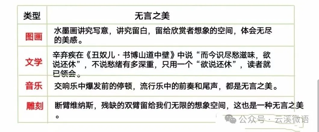 1.你还能举出一些其他表现“无言之美”的例子吗?