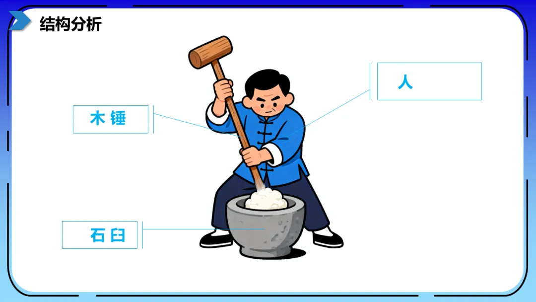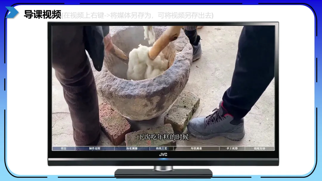 导课视频:视频介绍了打年糕这一传统习俗(课件中包含原视频)。讲解本节课学习的凸轮传动机构的特点以及在作品中的具体应用,加深理解。这部分内容主要是方便老师做课后反馈,发家长群使用,老师们请根据需要做适当修改。尊敬的家长,您好!
