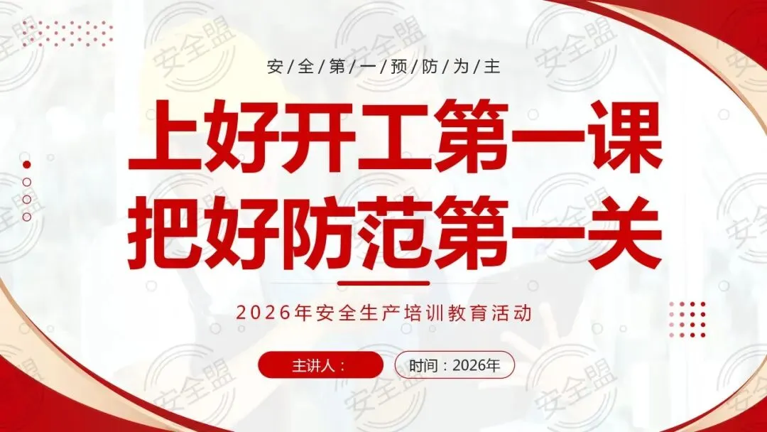 安全无终点,起步即严管。赶紧点击下方获取完整课件,转发给团队全员学习,用扎实的安全培训为2026年开工保驾护航,让平安伴随每一项工作推进,顺遂启新程!