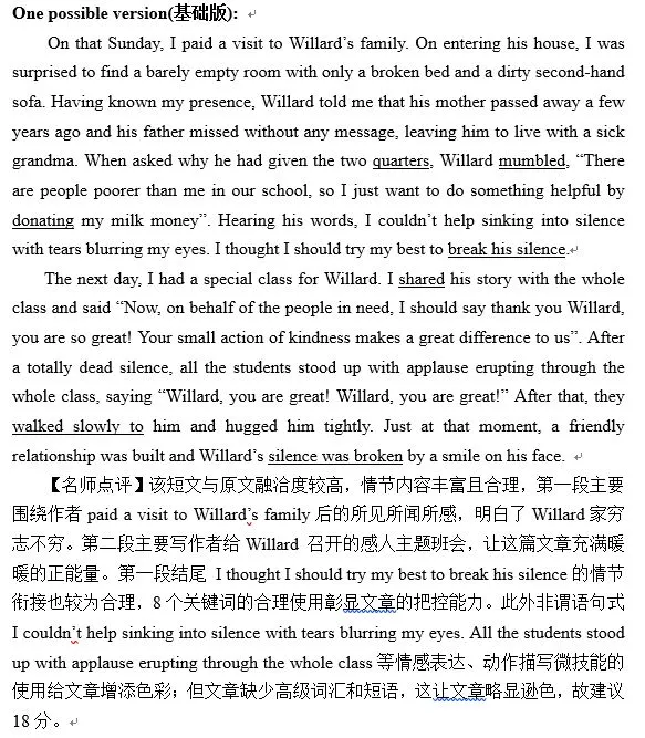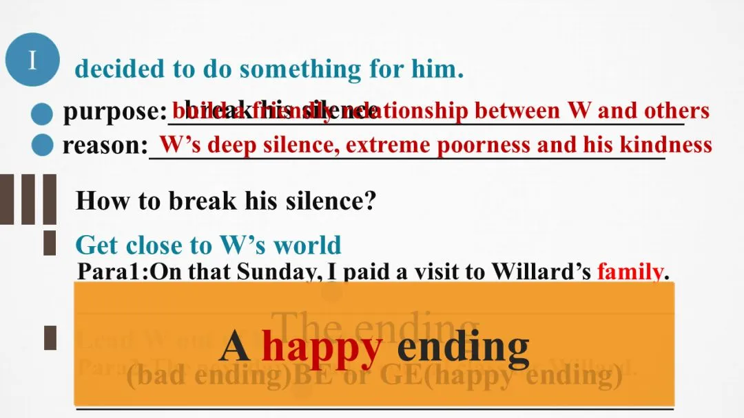 行动的动机是“I”续写中所要进行的行动归根到底是由于Willard的沉默、家境贫困和他善良的内心。
